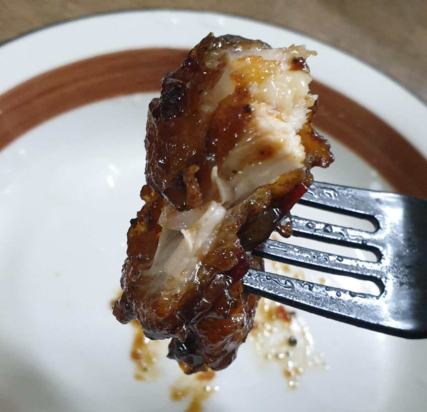 블랙시크릿 순살 치킨은 일단 외관은 검은색 소스가 눈에 띄네요. 향은 흠... 제 개인적인 생각은 간장 치킨 느낌이 약간 났습니다. 한 조각 먹고 느낀 점은 일단 간이 쌔다는 느낌입니다. 뭔가 그냥 먹기엔 짜게 느껴질 수도 있을 것 같네요.