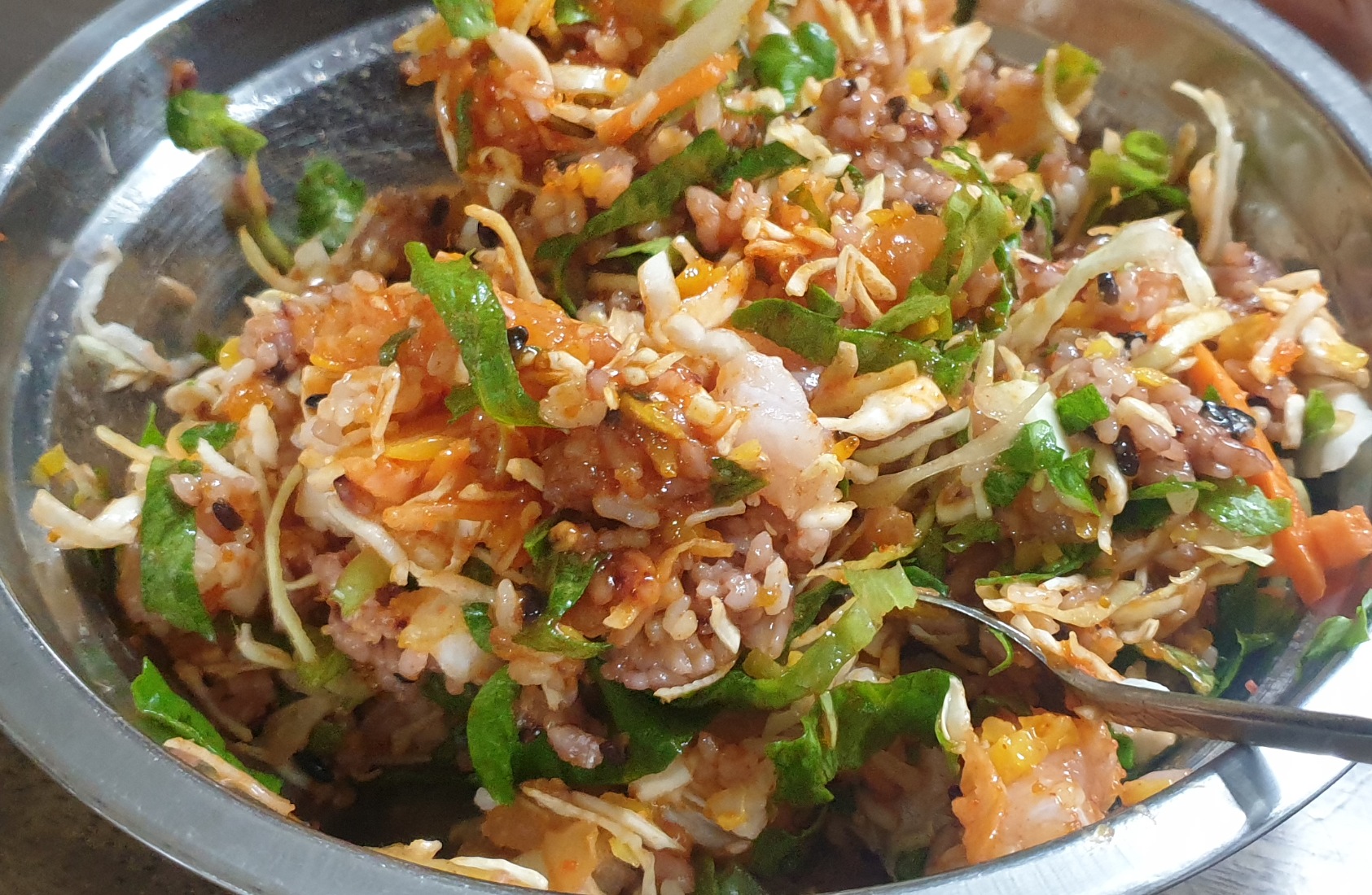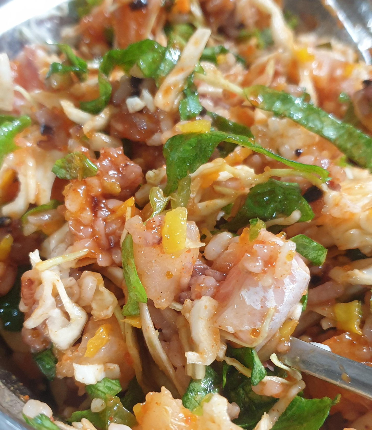 일단 찬밥과 비벼먹었는데 밥이 많았던 건지... 초고추장을 2개 넣어도 싱거웠습니다. 재료와 밥의 비율을 볼 땐 밥이 많았던 것 같지는 않은데 말이죠. 그래서 집에 있던 초고추장을 추가로 넣어서 먹었습니다.