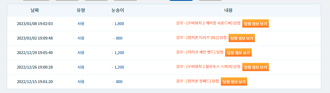 이번 눈송이 이벤트는 알차게 당첨됐던 것 같습니다.