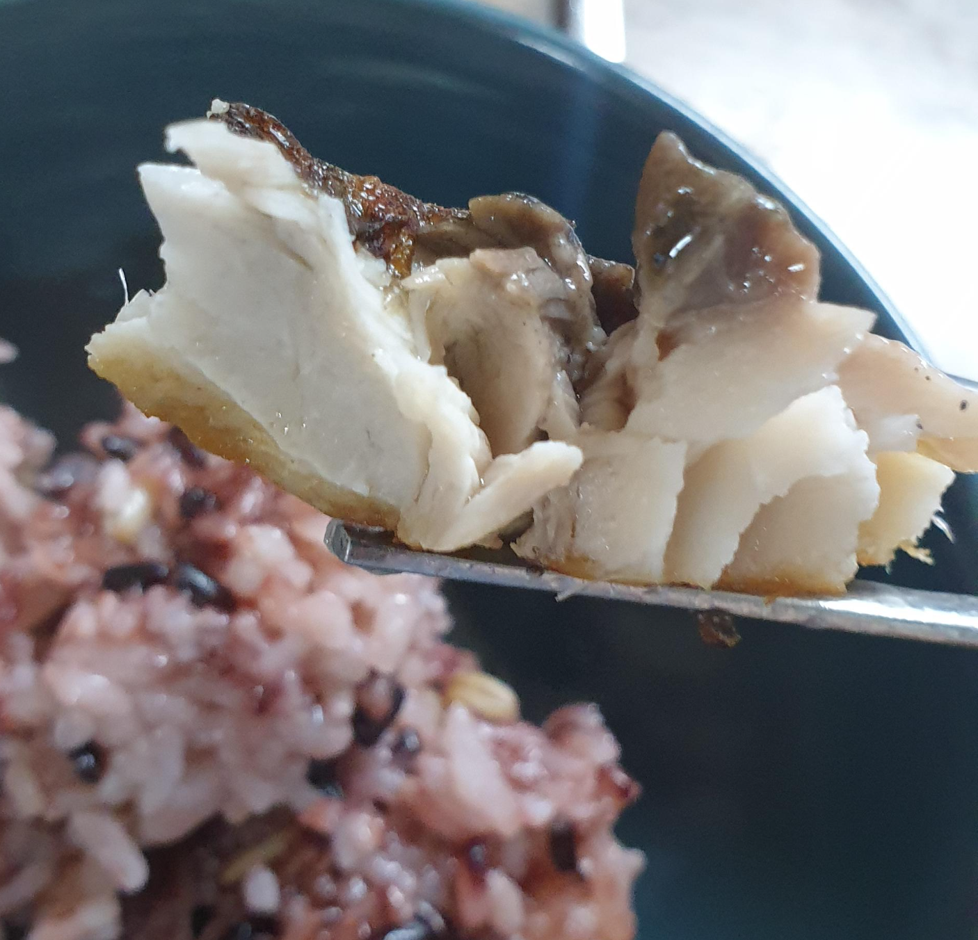 굽기 전에 소금을 따로 조금 쳤는데 짜더군요. 소금이 미리 쳐있는지 확인을 안 한 잘못이지만 뭐 밥반찬이니 어느 정도의 짠맛은 밥으로 중화가 가능했습니다. 살은 정말 순살이라 따로 발라 먹거나 하지 않고 그냥 통째로 들고 밥 위에 올려서 먹어도 되고 입으로 와구와구 씹어도 가시가 하나도 없더군요. 뭔가 이걸 튀기면 생선가스가 될 것 같은 느낌도 들고 어쨌든 좋았습니다. 먹고 나서 가시나 머리, 꼬리 같은걸 따로 치워야 하는 번거로움이 없는 것도 좋았고, 각각 따로 낱개 포장 되어있는 점도 좋았습니다. 다음에 다른 생선도 사봐야겠네요.