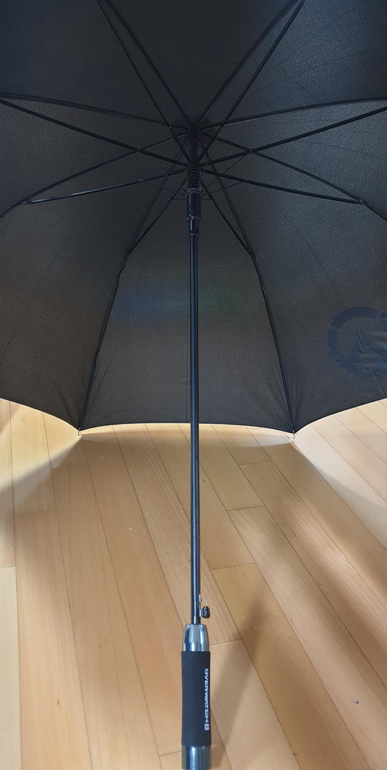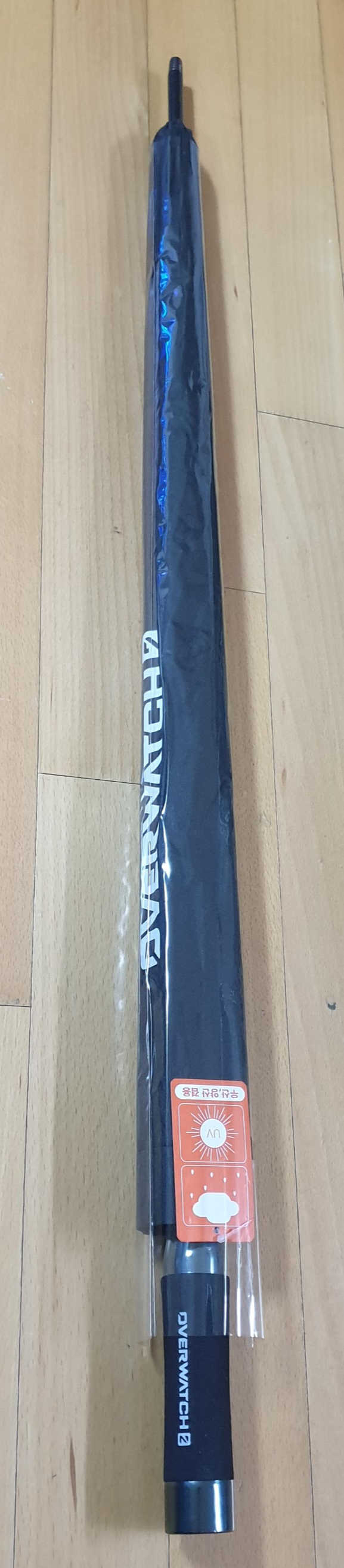 우산에는 한쪽에는 오버워치 로고 그리고 반대편에는 오버워치2 문자가 들어가 있습니다.