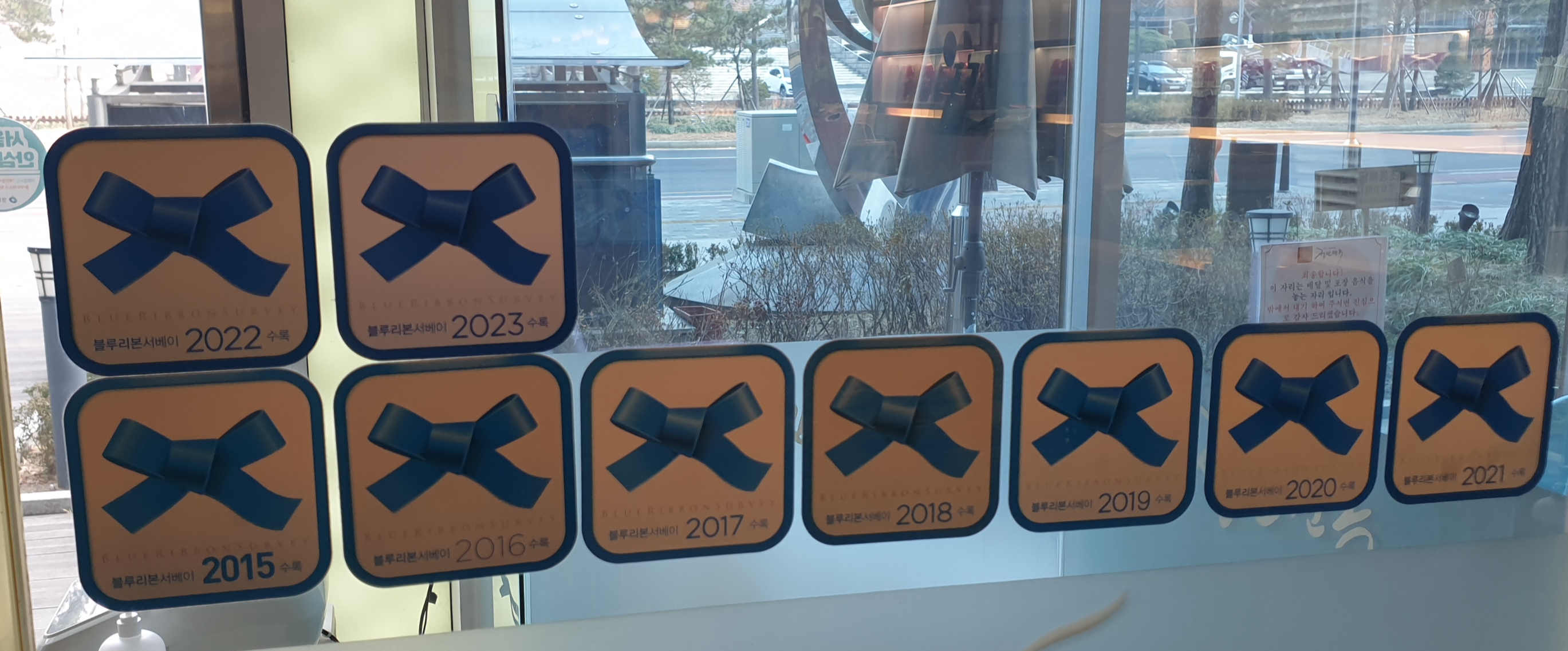 식당에 들어서니 블루리본 서베이와 미쉘린 인증이 눈에 띄네요.