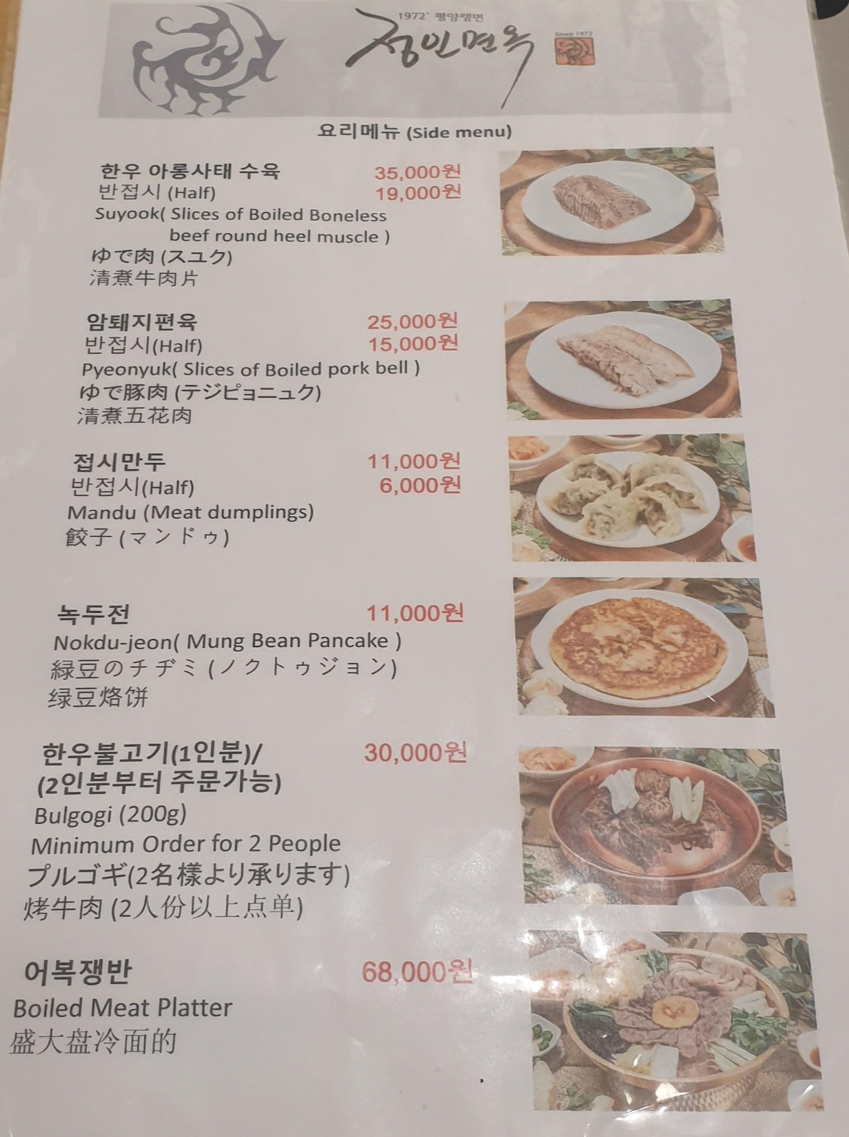 전체적으로 냉면 말고도 만두나 돼지고기도 맛이 심심한 편이었던 것 같습니다. 메뉴판에서 본 비빔냉면인 평양냉면은 들어본 적이 없는 것 같아서 궁금함이 있기에 다음에 비빔냉면과 온면을 먹어보려 재방문해봐야겠습니다.