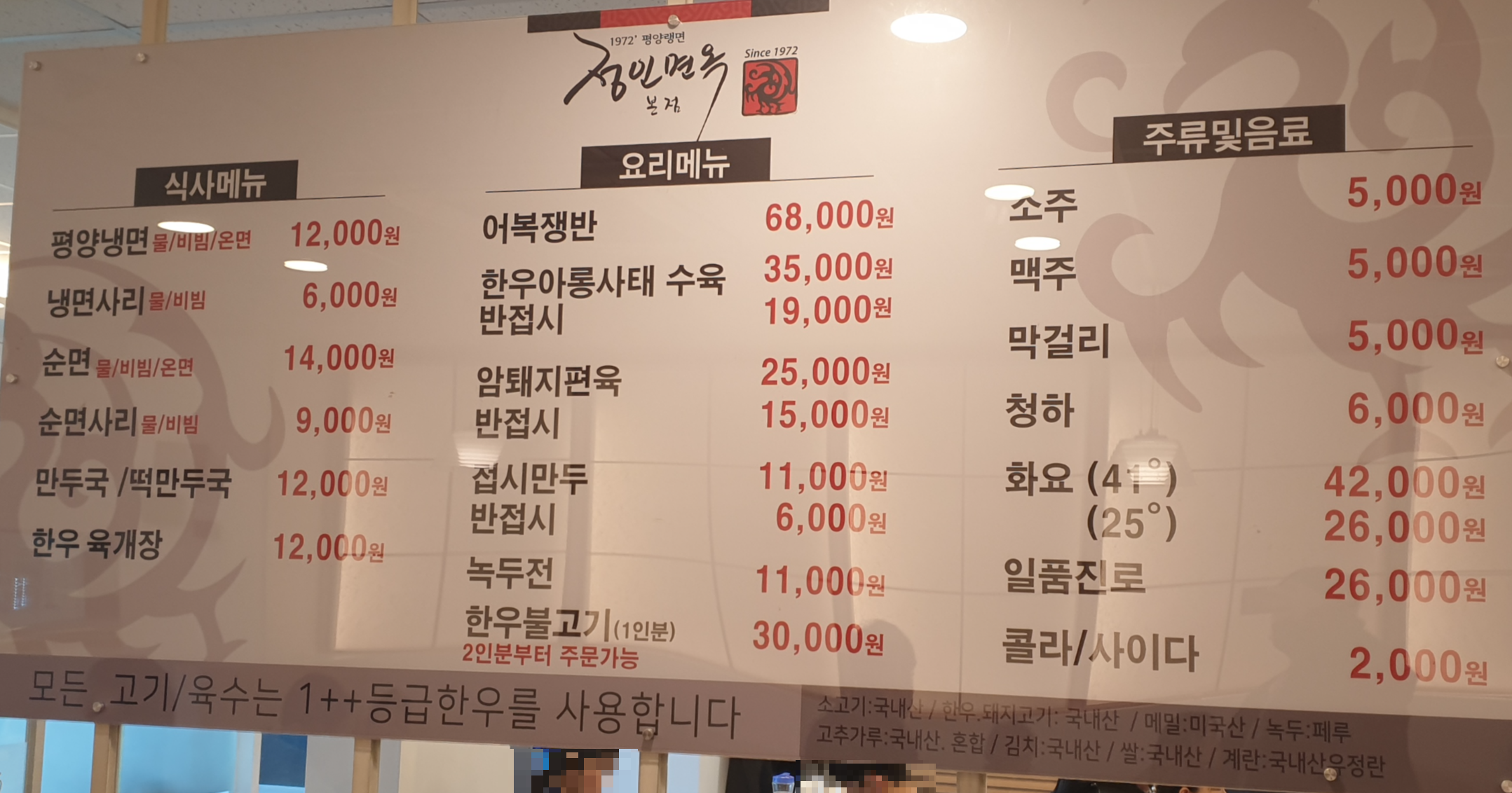 여의도 국회의사당 건너편 쪽에 있는 정인면옥 본점에서 점심을 먹었습니다.