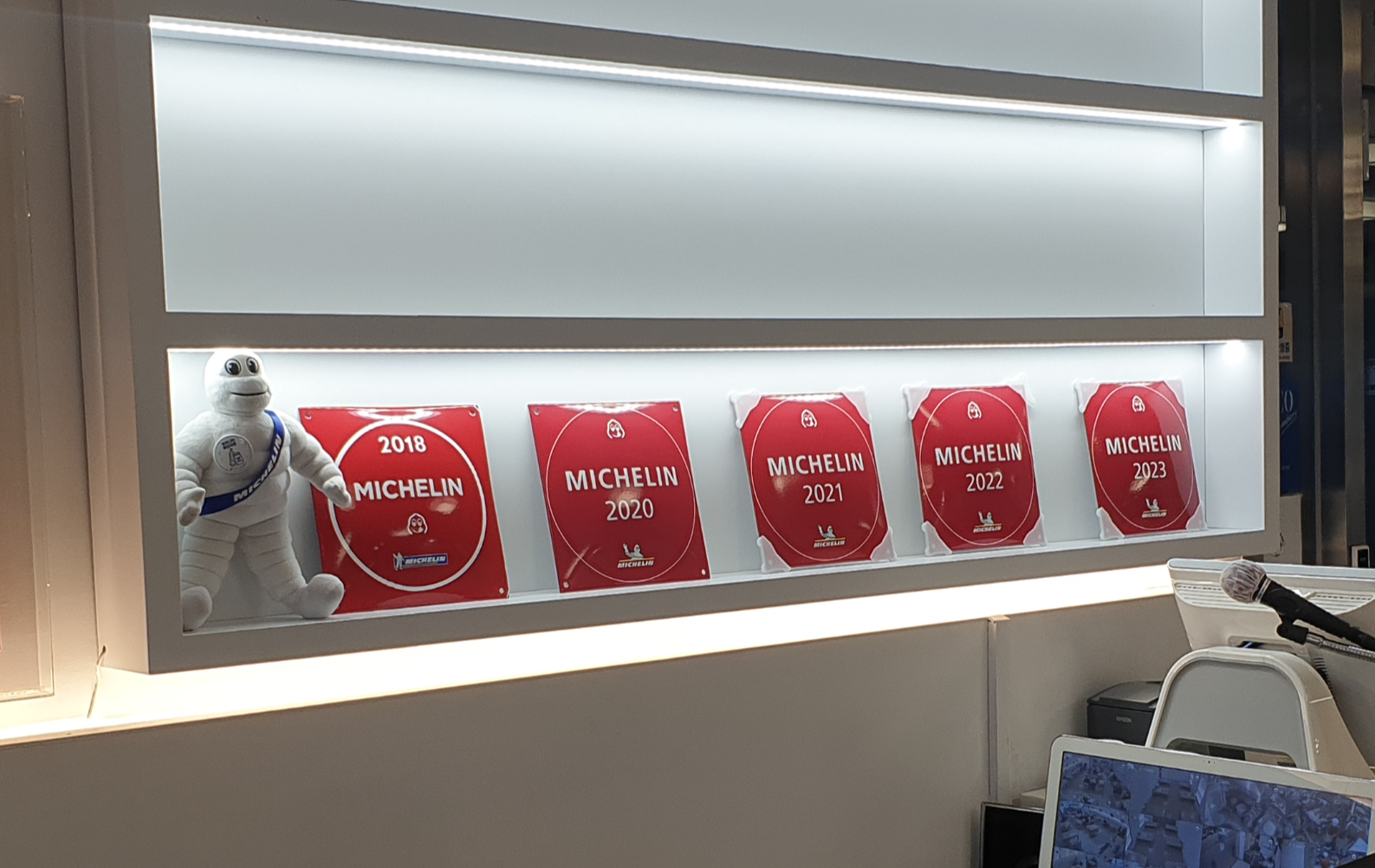 식당에 들어서니 블루리본 서베이와 미쉘린 인증이 눈에 띄네요.