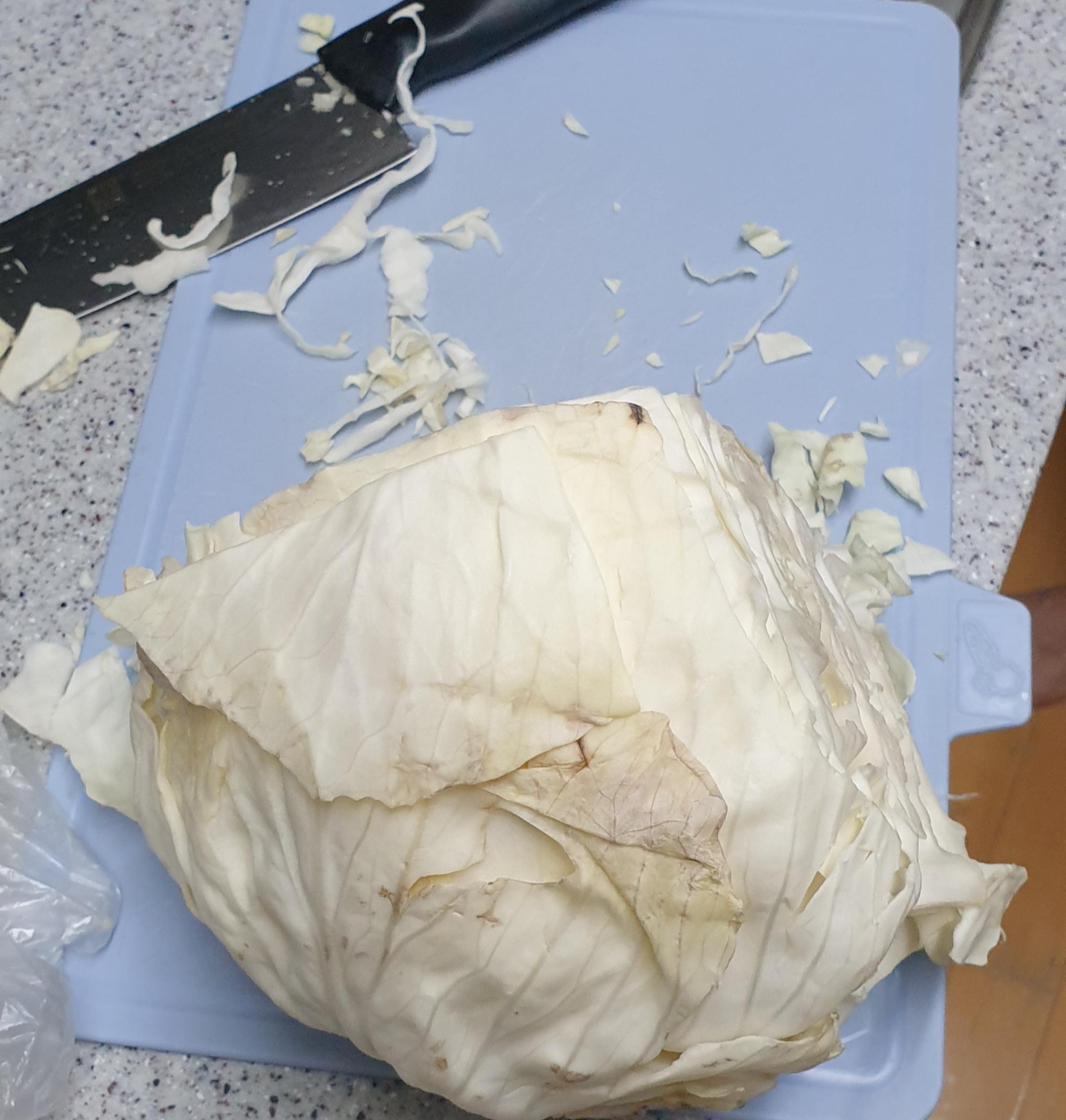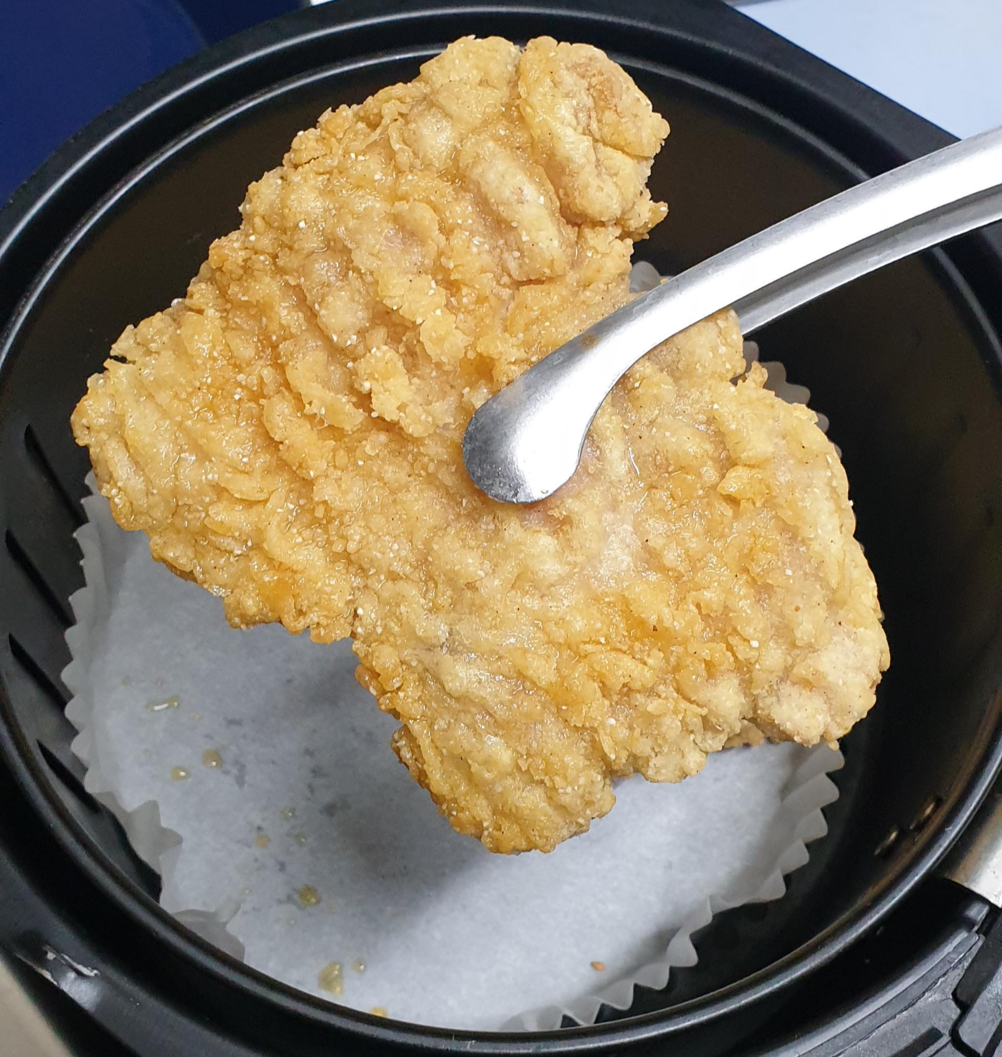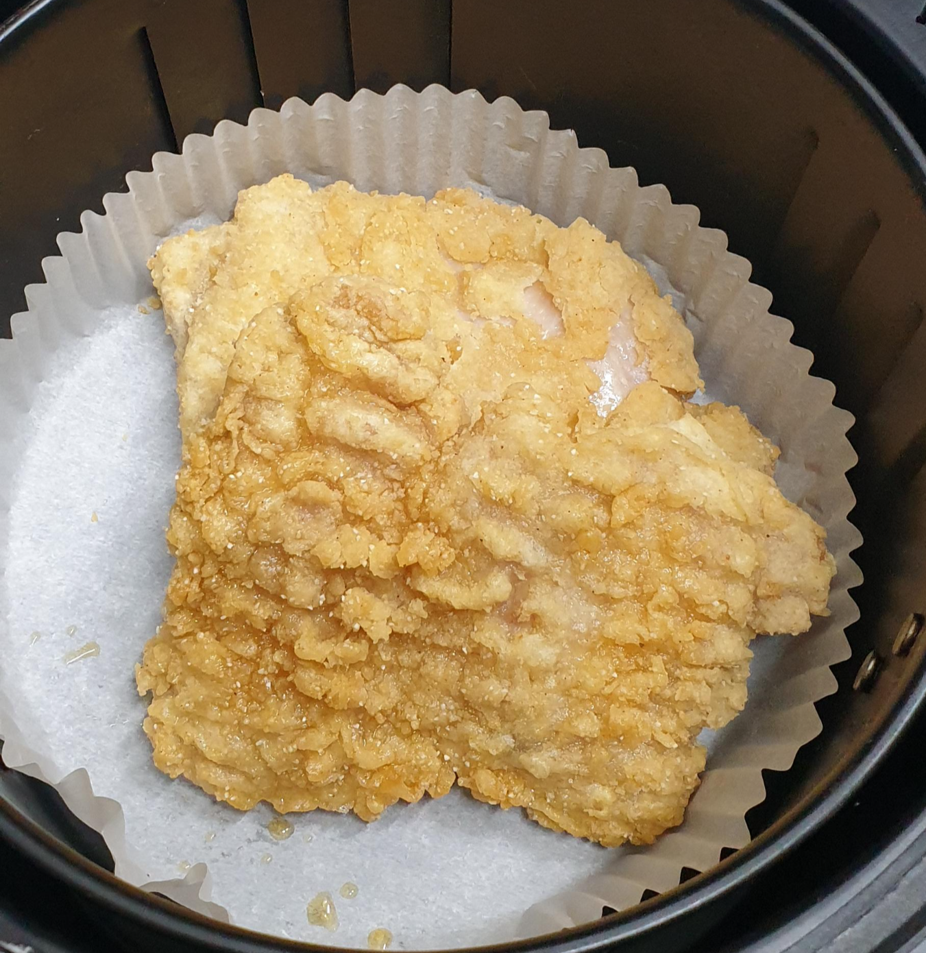 유린기는 두 개가 들어있네요. 유린기는 그냥 소스만 부어먹으면 느낌이 안 나니 냉장고에 있던 양배추를 채 썰어 추가해서 먹었습니다. 저는 에어프라이어로 조리했습니다. 꽤 오래 걸려서 20분 정도 조리한 것 같네요.