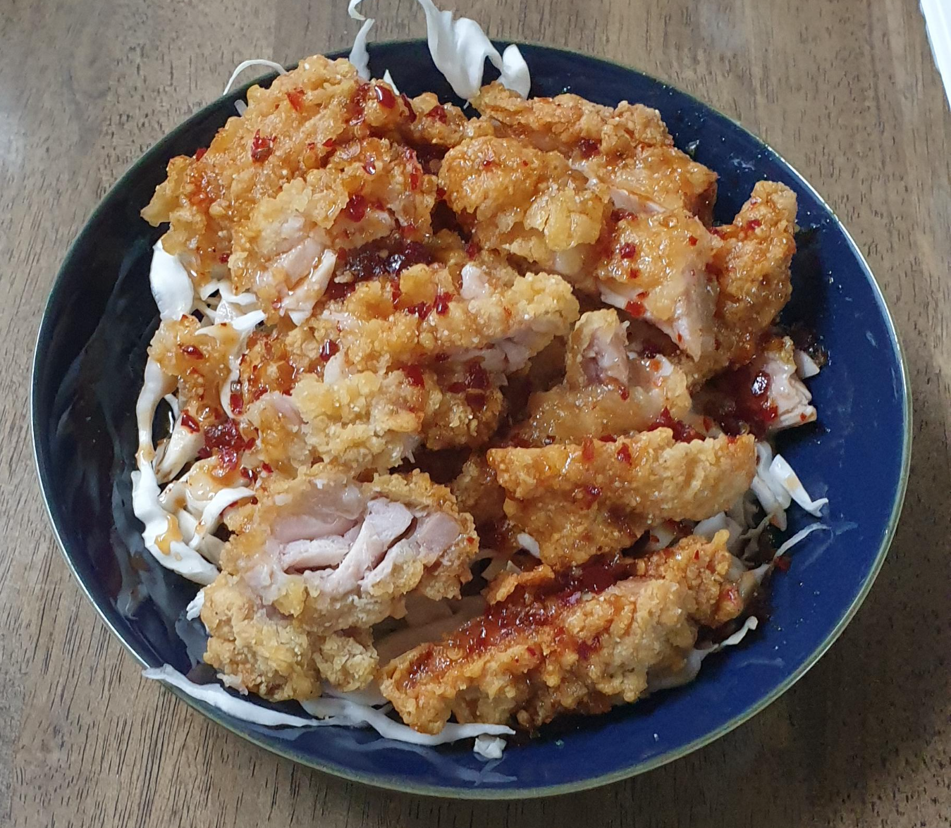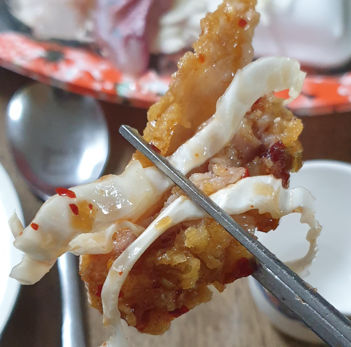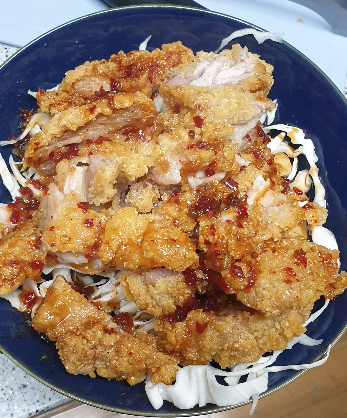 뭔가 밑에 야채가 있으니 그럴듯해 보이네요. 새콤한 소스가 양배추와 어울리고 닭고기도 부드러워서 맛있었습니다.