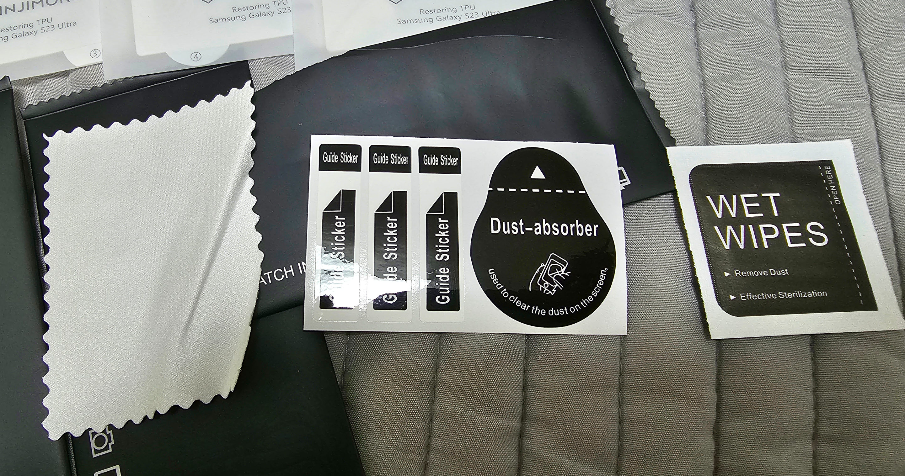 클리너 킷트에는 클리너 천과 WET 클리너 먼지제거용 스티커가 들어있습니다.