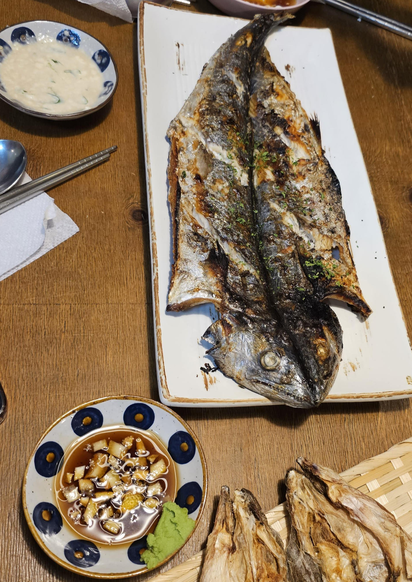 삼치구이는 생각보다 큰 사이즈가 나왔습니다. 찍어먹을 간장? 같은게 같이 나오는데 삼치 자체도 간이 있어서 없이 먹어도 될것 같았습니다. 같 구워서 나와서 따끈따끈할 때 먹으니 부드럽고 맛있었습니다.