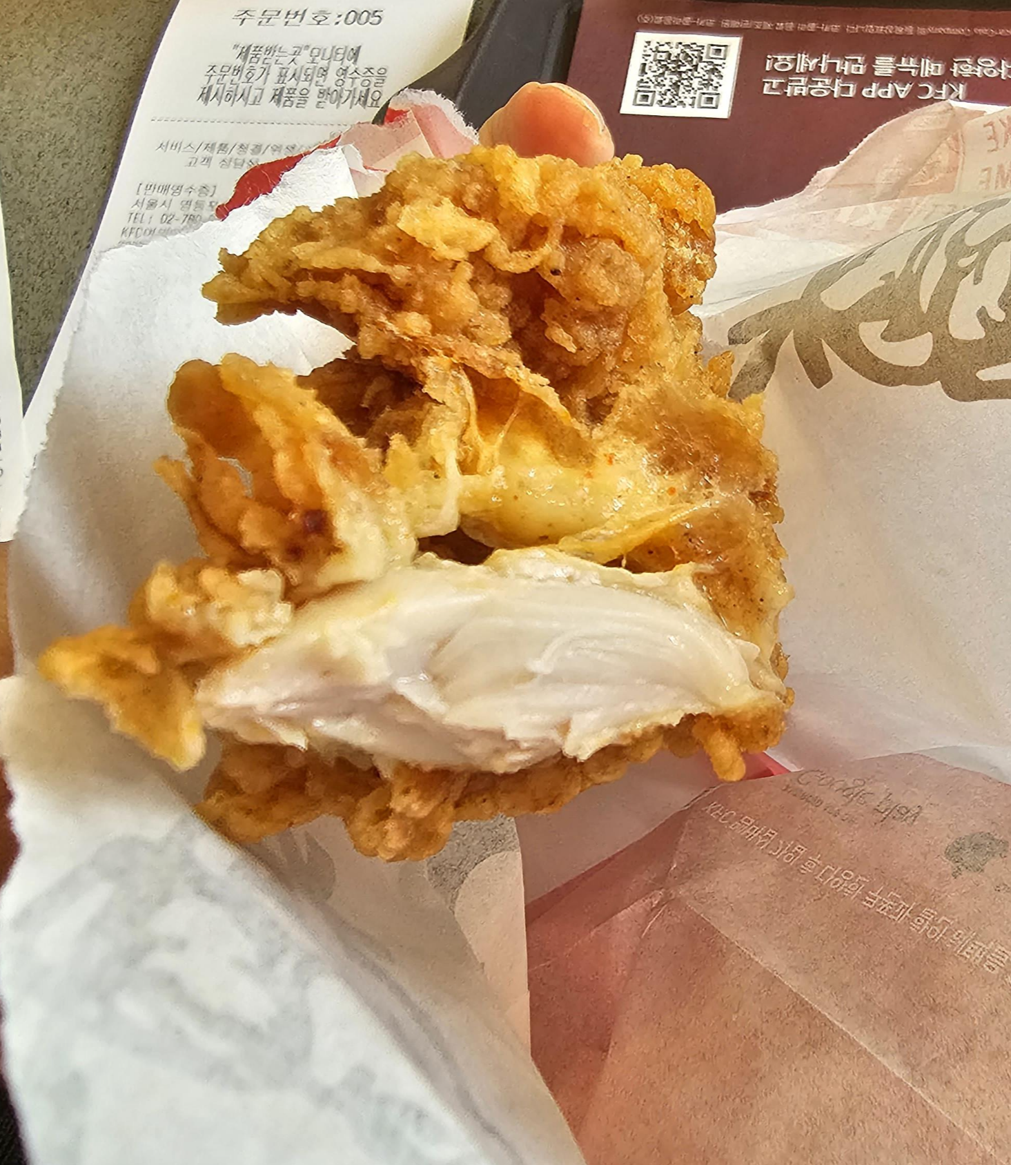 치킨을 아마 블랙라벨 치킨이었던 것 같은데 부드럽고 KFC 치킨답게 간이 쌔고 맛있었습니다.