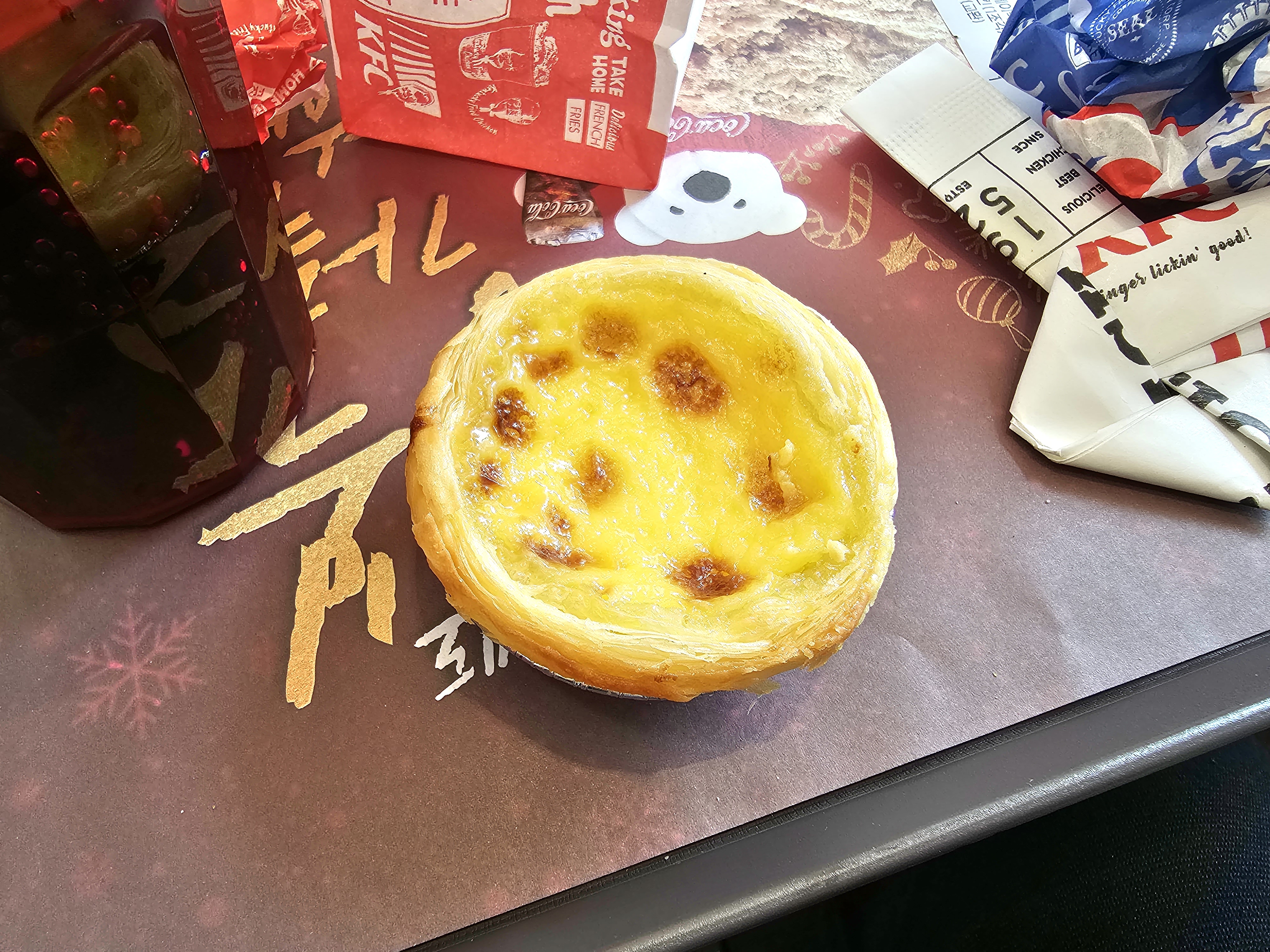 KFC 구매 후 영수증에 설문조사를 하면, 에그타르트나 코올슬러 중에 1개를 무료로 준다고 하여 설문조사 후 에그타르트를 받았습니다. 주문 후에 데우는지 만드는지 모르겠지만 에그타르트가 나올 때까지 시간이 꽤 걸리더군요.