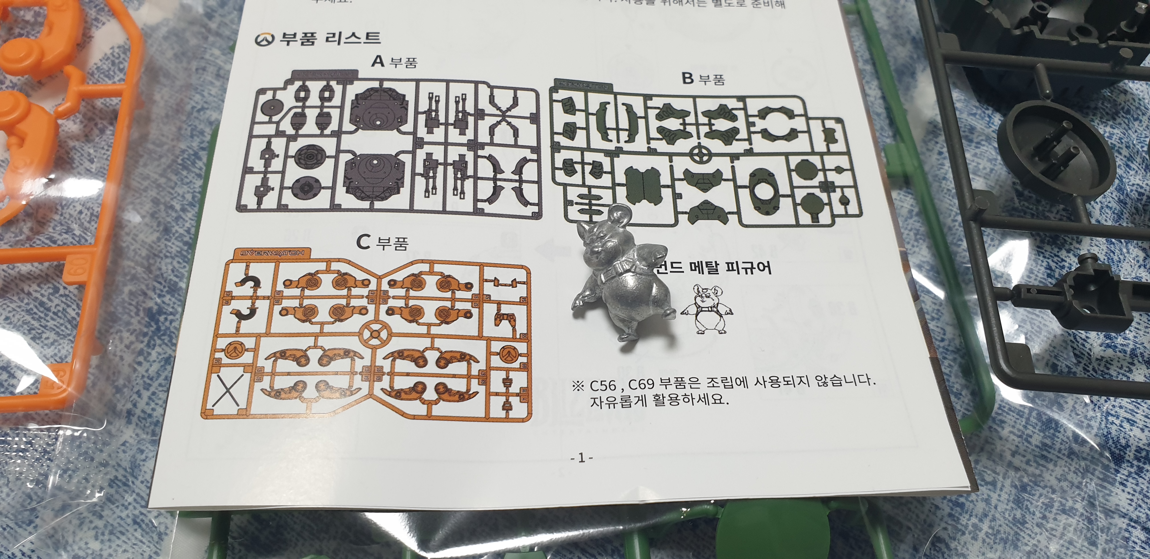 완성을 하고 남는 부품은 조립에 안쓰이는 오버워치 로고와 뚜겅을 닫은 것처럼 보일수 있는 예비 뚜껑...