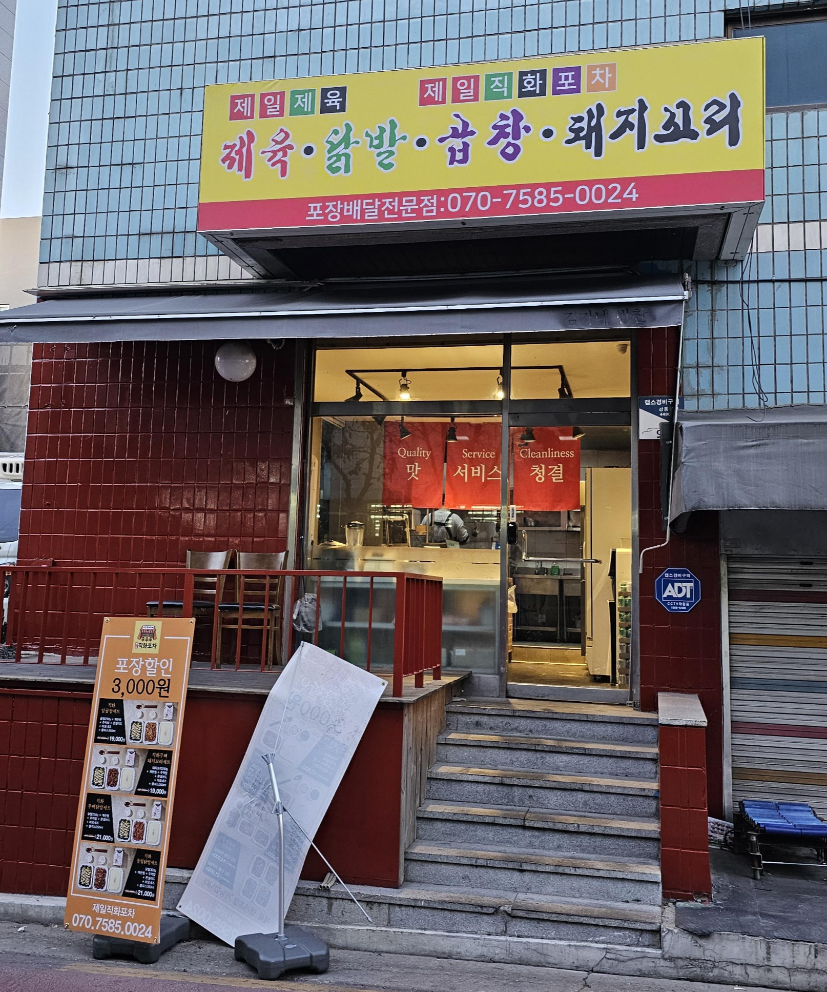 간판이 제일제육과, 제일직화포차가 둘 다 적혀있는데, 배달의 민족 같은 어플에는 제일제육으로 나오더군요.