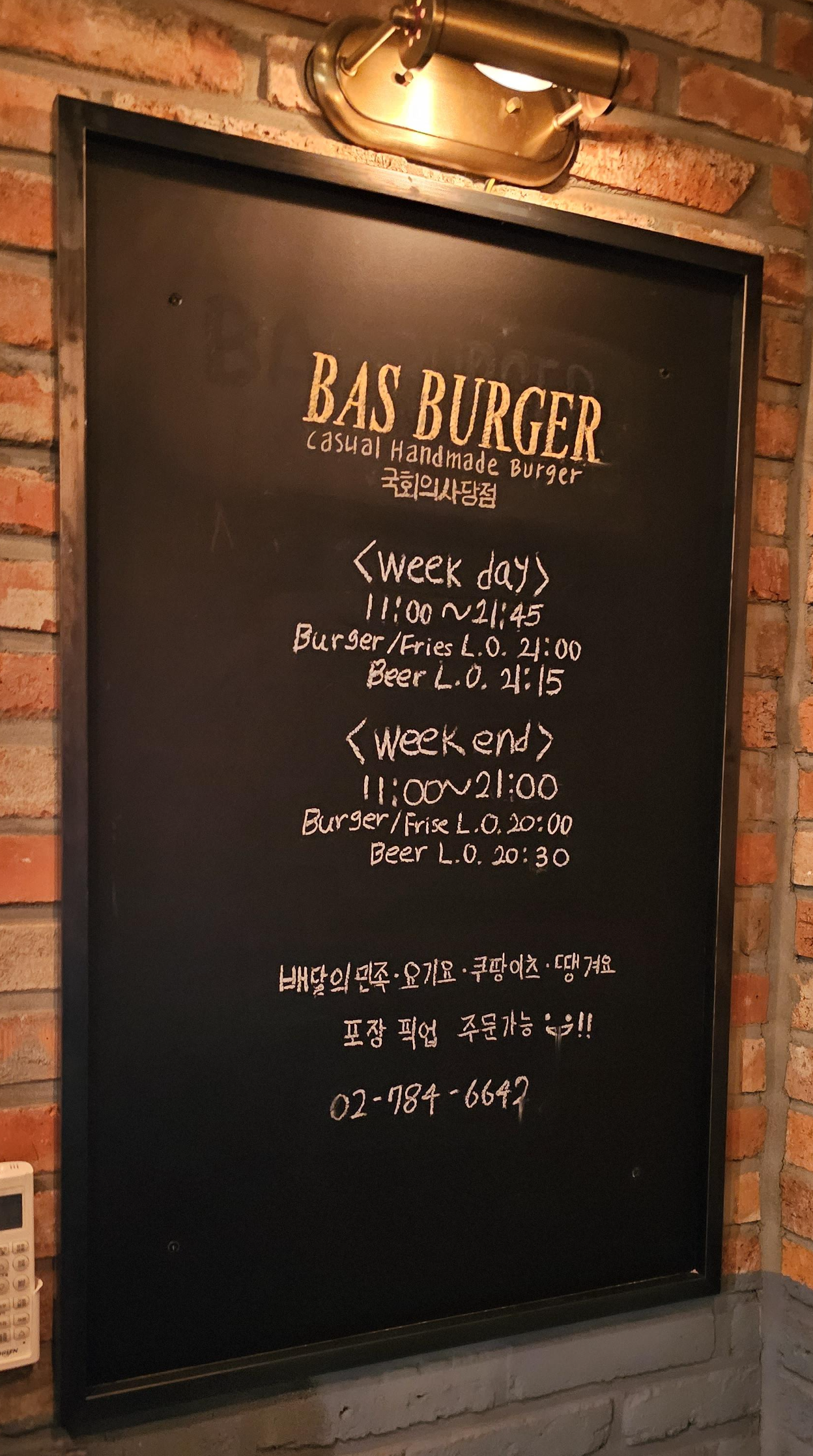 바스버거 국회의사당점은 배민이나 요기요, 쿠팡이츠, 땡겨요 에서도 주문할 수 있는 것 같네요.