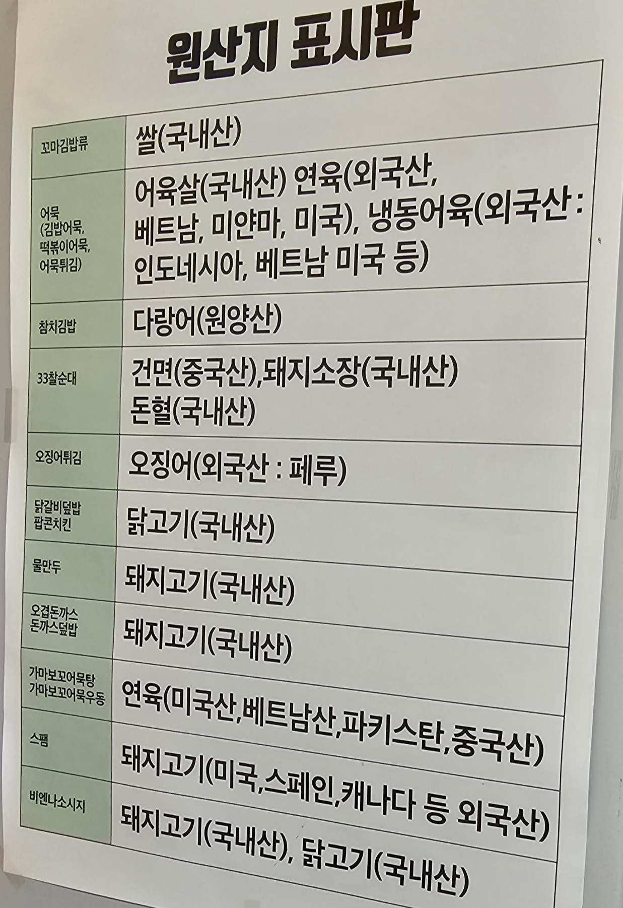 메뉴판에는 떡볶이, 김밥 여러 분식 메뉴가 있네요.