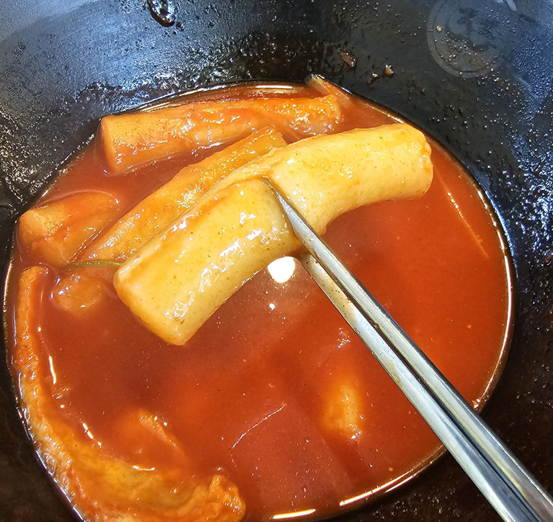 국물떡볶이의 떡은 밀떡이었는데 큼직하게 들어있는데, 밀떡이라 매콤한 양념이 잘 배어 있어서 좋았습니다. 어묵도 꽤 들어있어서 좋았습니다. 떡볶이의 맵기는 신라면보다 살짝 매웠던 것 같습니다.