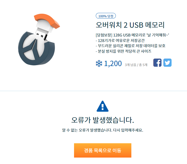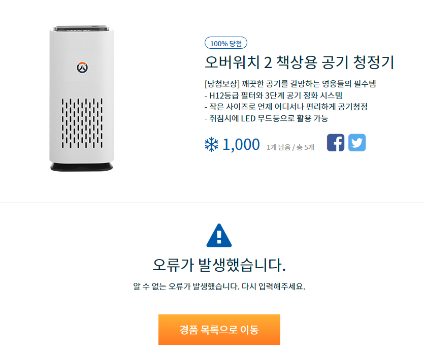 어쨌든 배너 문제도 그렇지만 그전에는 상품의 종류가 다양하지 않은 대신 한 상품당 개수가 30개, 80개 이런 식으로 많아서 오류가 발생해도 다른 사람도 다 같이 발생하니 한 품목만 노리고 계속 새로고침 하다 보면 운 좋게 한 개씩 먹을 수 있었는데, 이번 눈송이 100% 경품은 종류는 더 많은 것 같지만 각 품목당 개수가 5개 많으면 10개다 보니 한번 삐끗하면 소진되었다는 메시지가 나오는 것 같네요.