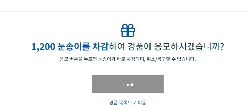 다음 주에는 이벤트 마지막주라 개수가 더 많이 나올 수도 있을 것 같지만... 퇴근길이라 폰으로 하기도 힘들 것 같고, 마지막주면 일반 확률 경품도 매진될 것 같기도 하고, 2주 정도 보니 저는 당첨은 힘들 것 같아서 포인트 못쓰는 것보다는 남은 포인트는 그냥 확률형에 다 쓰고 다음 주는 신경을 안 쓰기로 했습니다. 역시... 확률은 당첨이 안되네요. ㅎㅎ