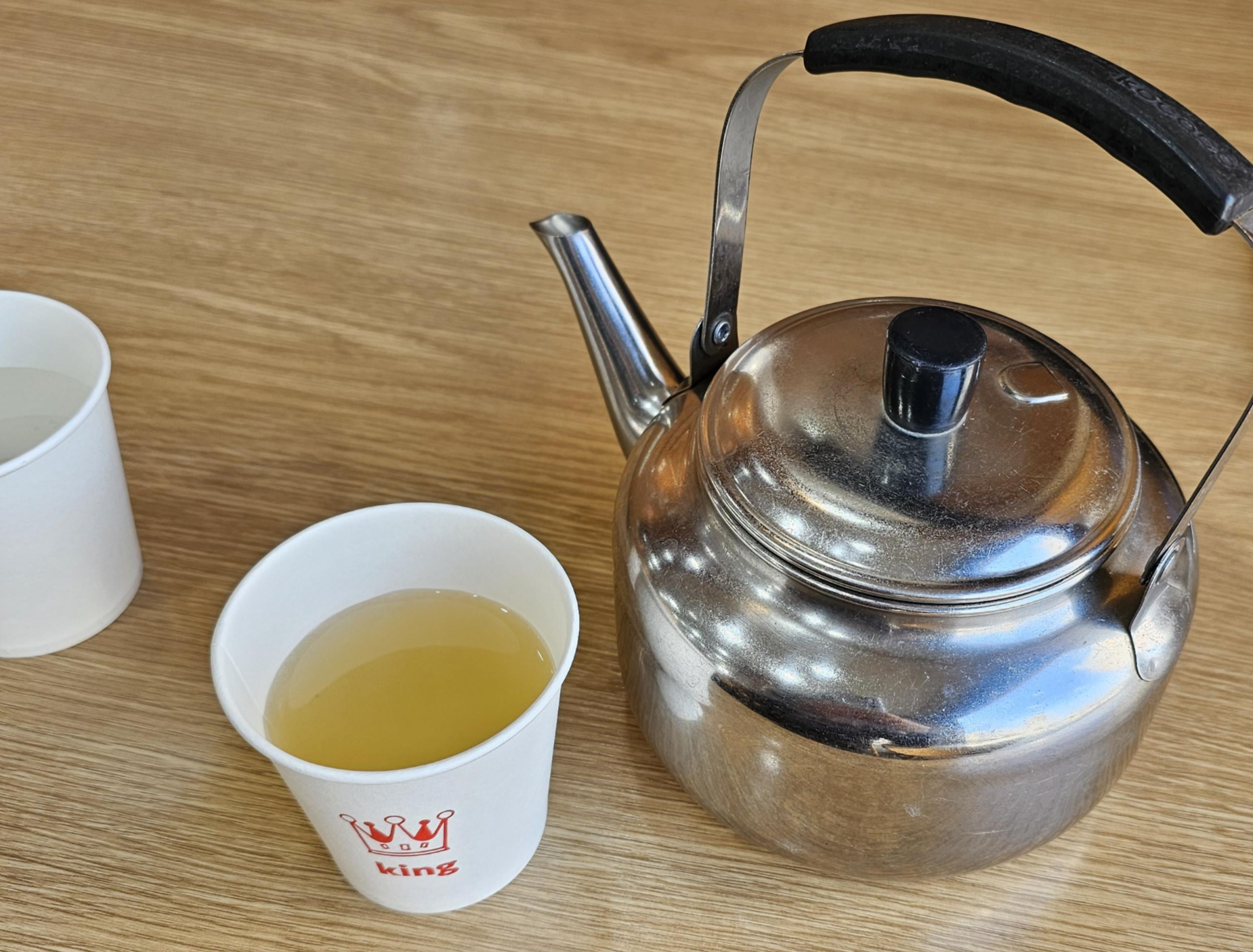 따끈한 멸치국물과 백김치가 나옵니다. 멸치국물은 약간 간이 쌘 느낌이었습니다.