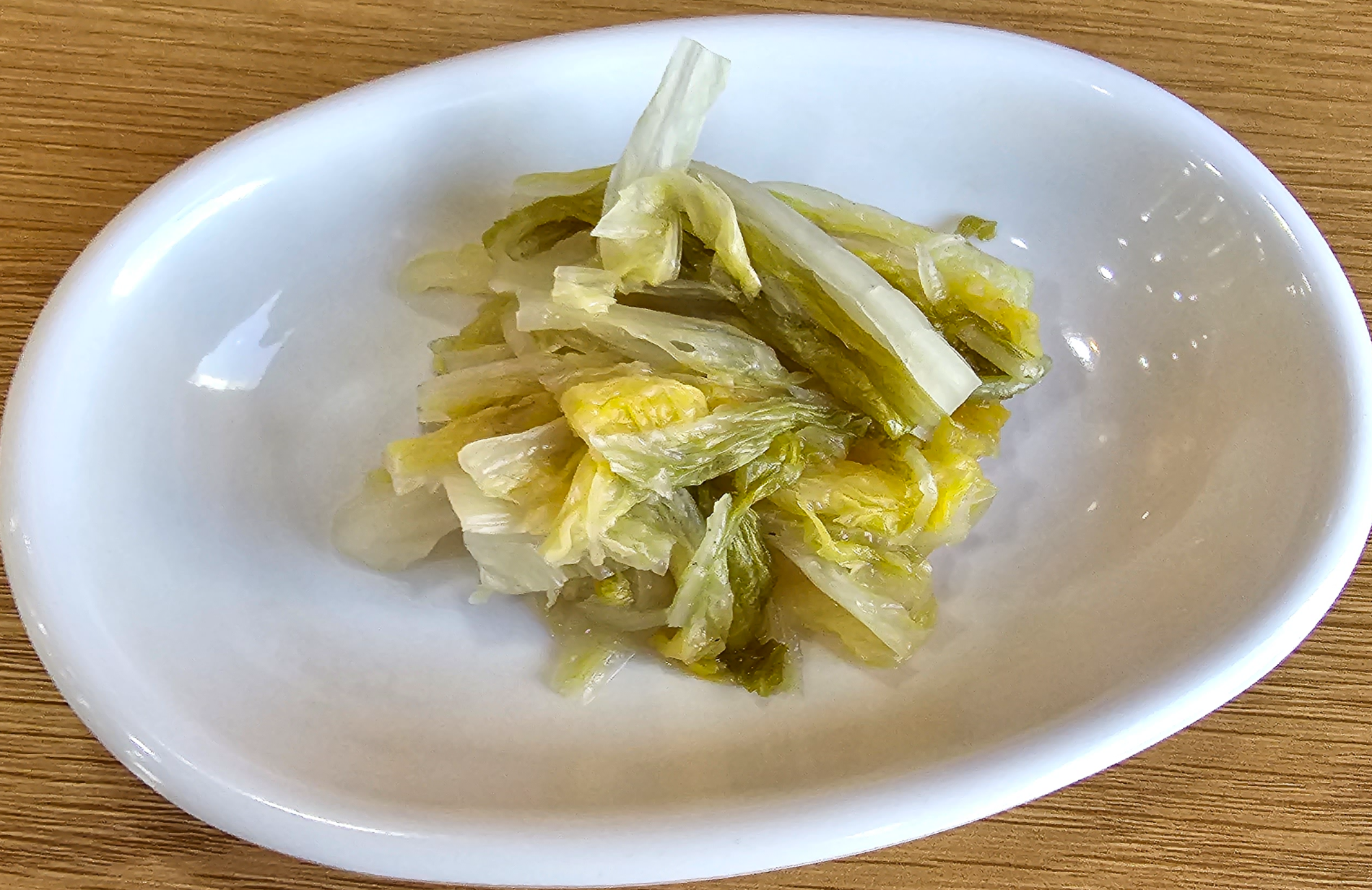 따끈한 멸치국물과 백김치가 나옵니다. 멸치국물은 약간 간이 쌘 느낌이었습니다.