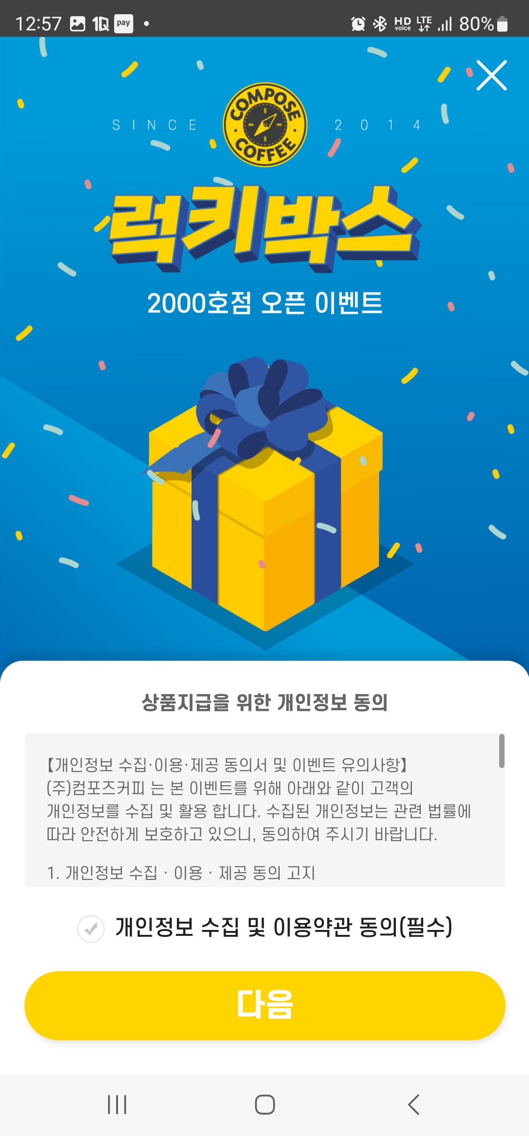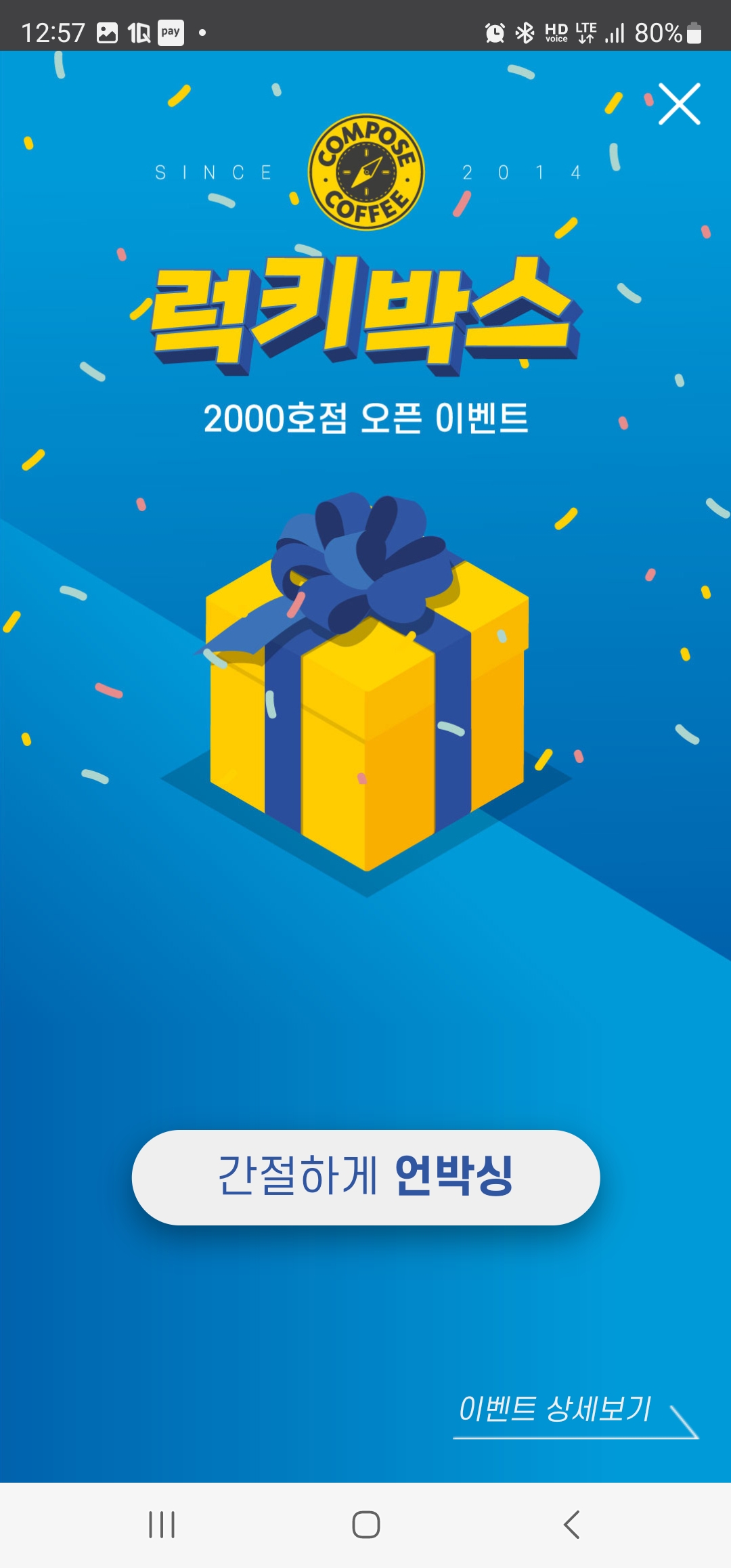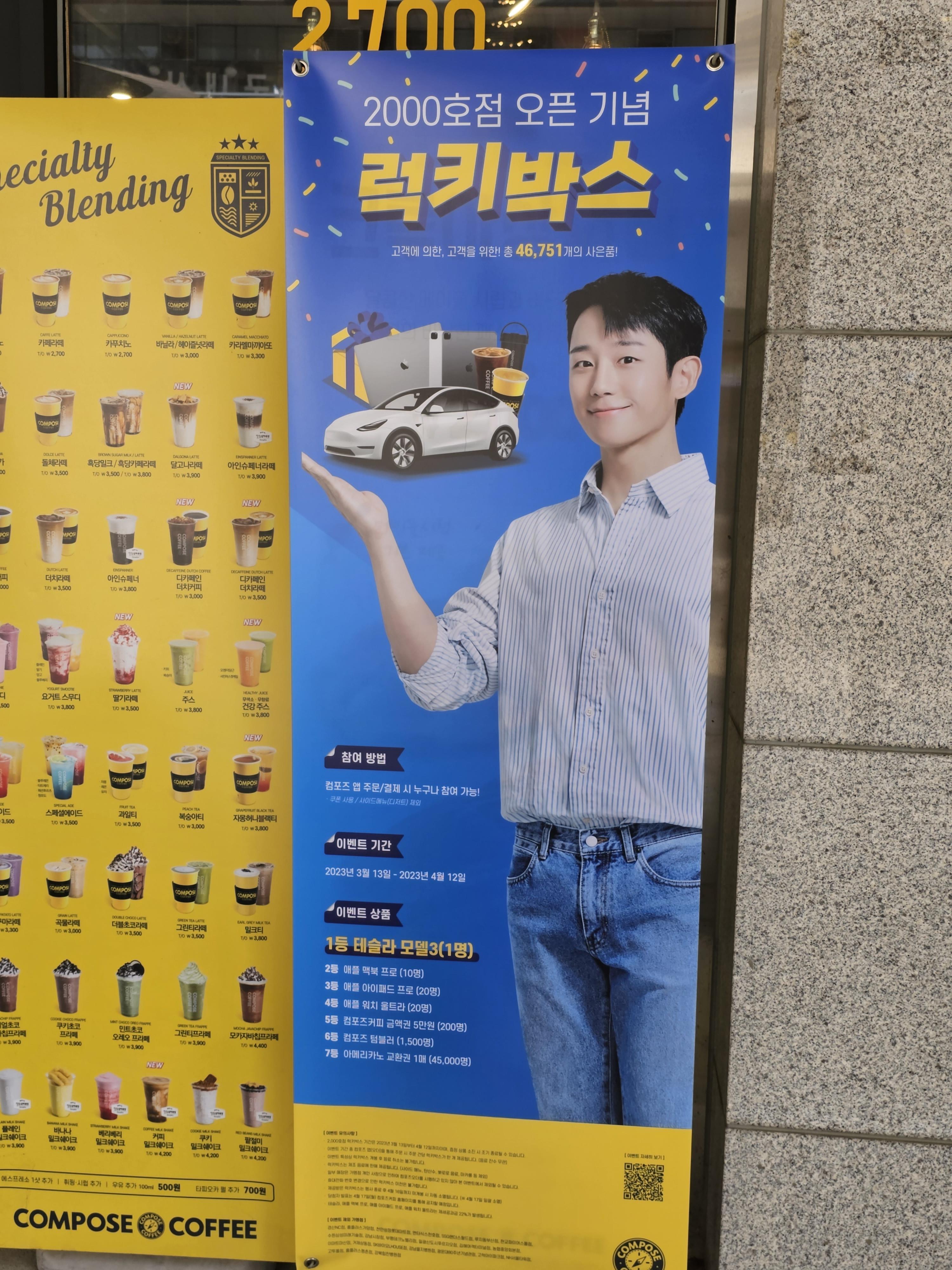지나가다가 본 컴포즈커피 입간판 2000호점 기념으로 커피를 사면 랜덤박스 이벤트를 할 수 있다고 하는 내용을 봤습니다.