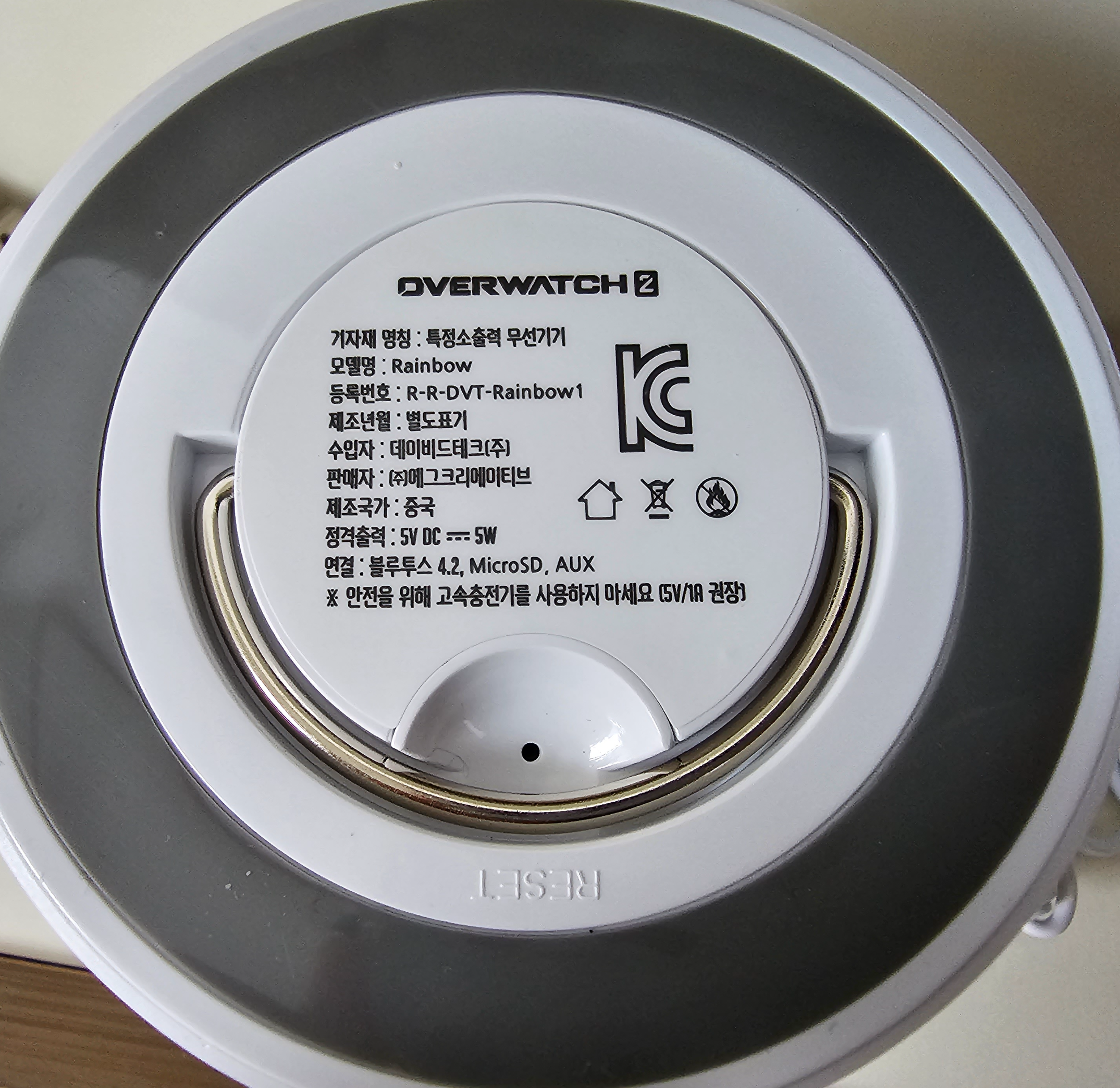 아랫부분에는 옆쪽에 오버워치 문구가 있고 뒤쪽에는 마이크로 SD 단자와 오디오 단자 그리고 5핀 충전 단자가 있네요.