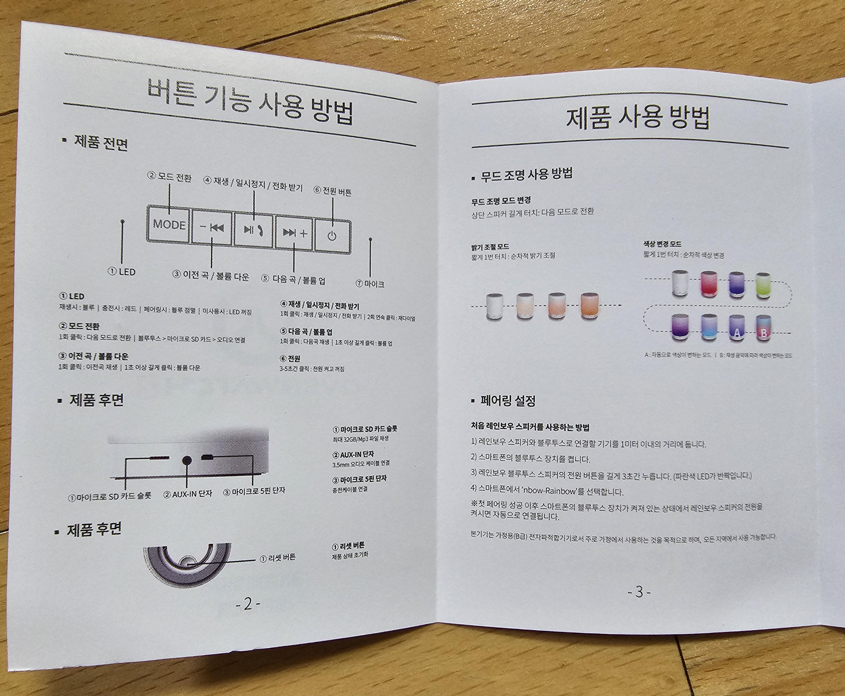 설명서를 보니 레인보우 블루투스 스피커가 원래 제품 이름인가 봅니다.