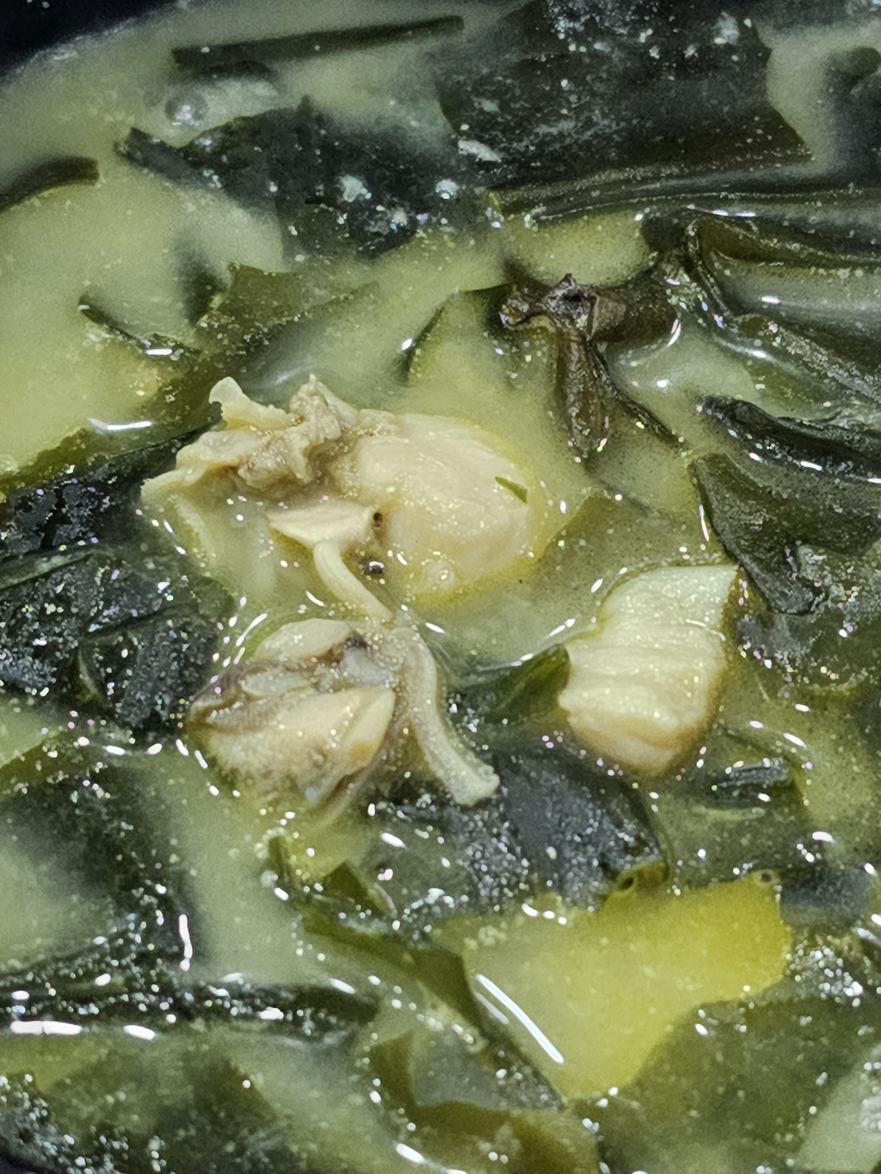 조개 미역국은 일단 외관으론 조개가 잘 안보엿지만 잘 섞어보니 가리비와 바지락이 보였습니다. 조개의 개수는 그렇게 많다고 할 수는 없는데 미역국과 조개의 조합이 좋은 건지 공깃밥 한 개를 금밥 먹어버렸네요. 국물 자체도 짭짤해서 계속 국물을 떠먹게 되더군요. 다른 분이 주문한 굴미역국도 사진은 없지만 굴이 5~6개 정도 들어 있고 맛도 괜찮았다고 하니, 다음에는 굴미역국을 먹어봐야겠습니다.