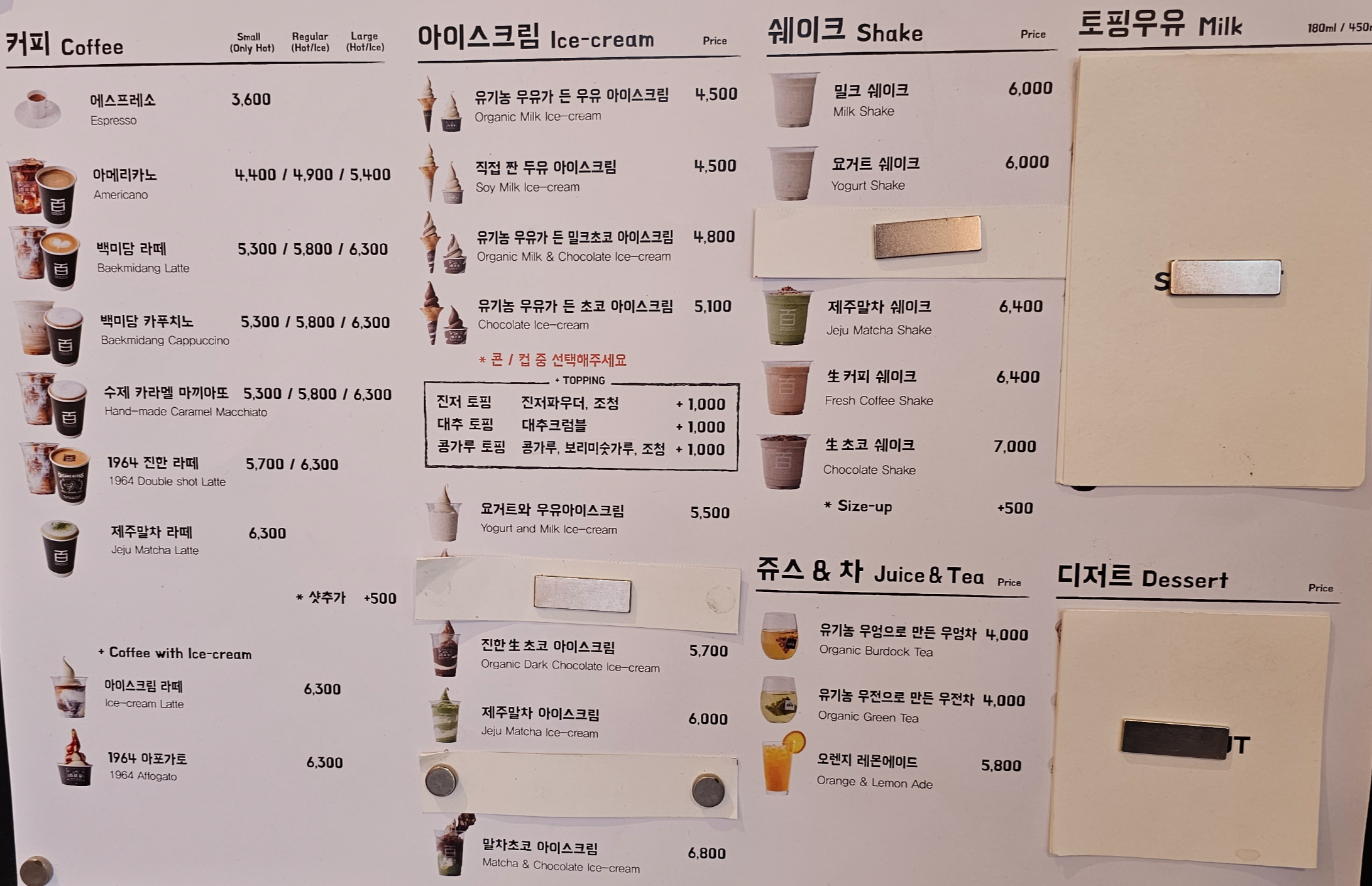 오늘은 예전보다 뭔가 가려진 메뉴가 늘어난것 같네요. 몇 번의 방문을 통해 제입에는 가장 기본인 우유아이스크림이 제일 잘 맞는다고 느꼈기 때문에 유기농 우유가 든 우유 아이스크림을 먹었습니다.