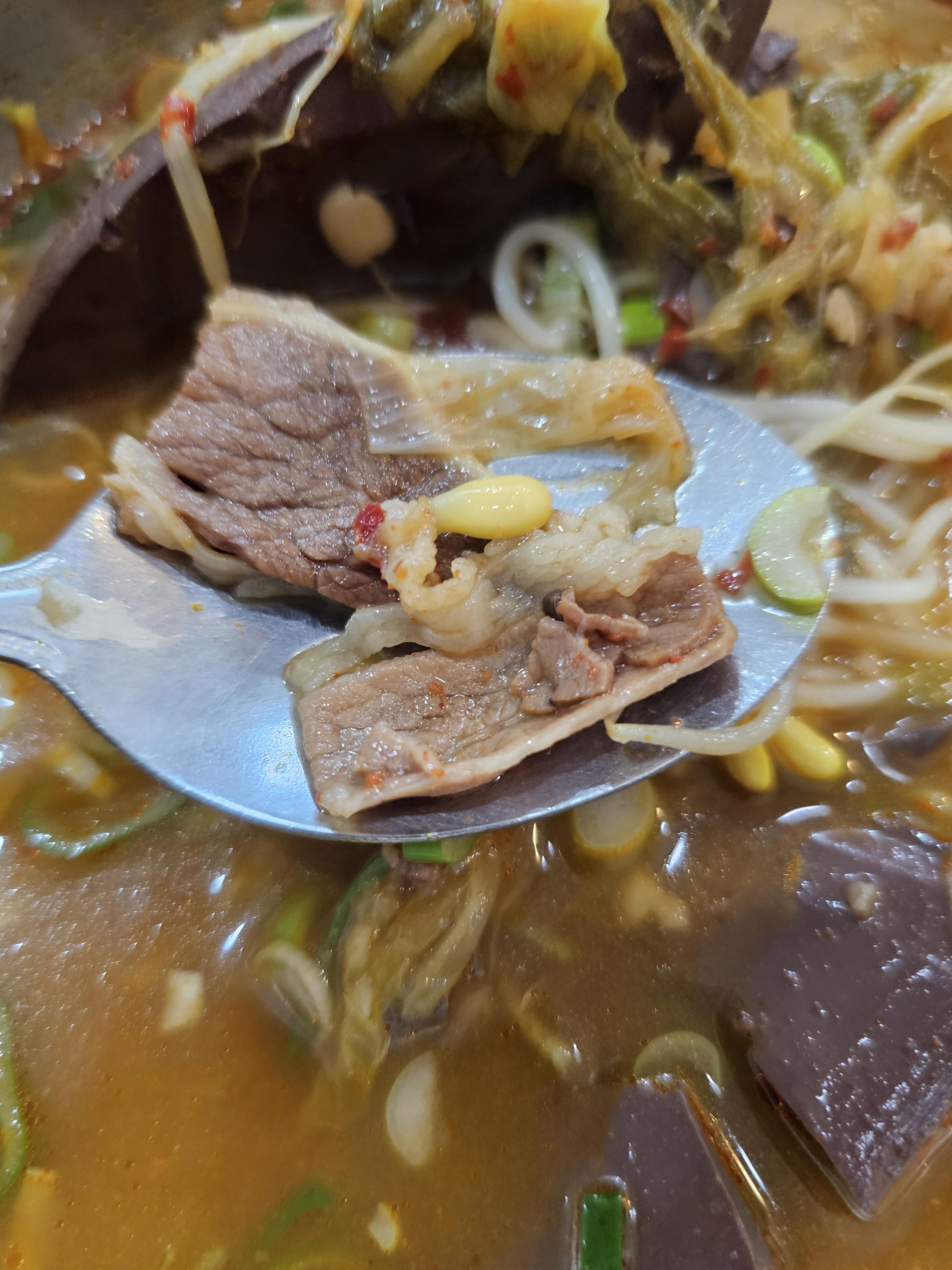 국물자체는 맵거나 하지는 않고 구수한 느낌의 국이었습니다. 소면의 양도 괜찮게 들어있었습니다.