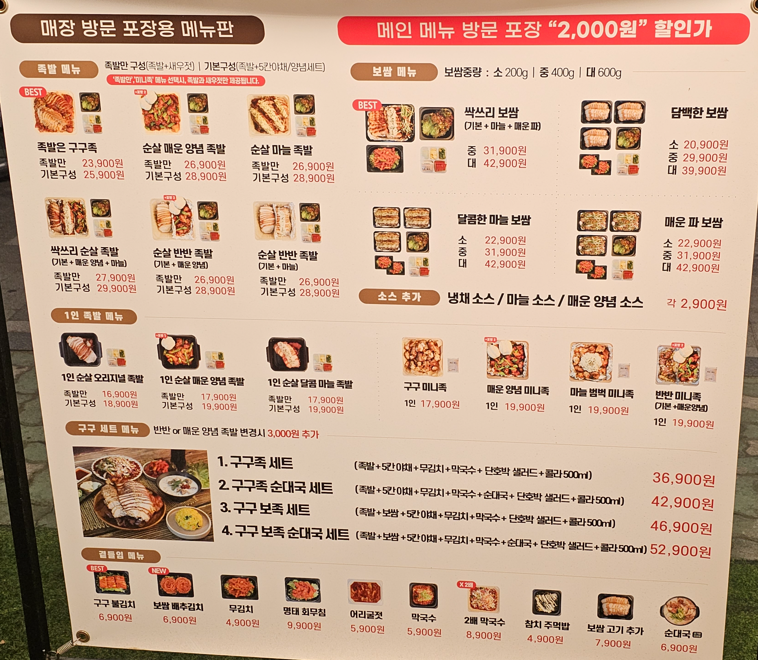 간간히 족발([문정] 구구족 - 1인 족발 + 막국수)을 사 먹던 구구족 문정위례점에서 보쌈을 포장해서 먹어봤습니다.