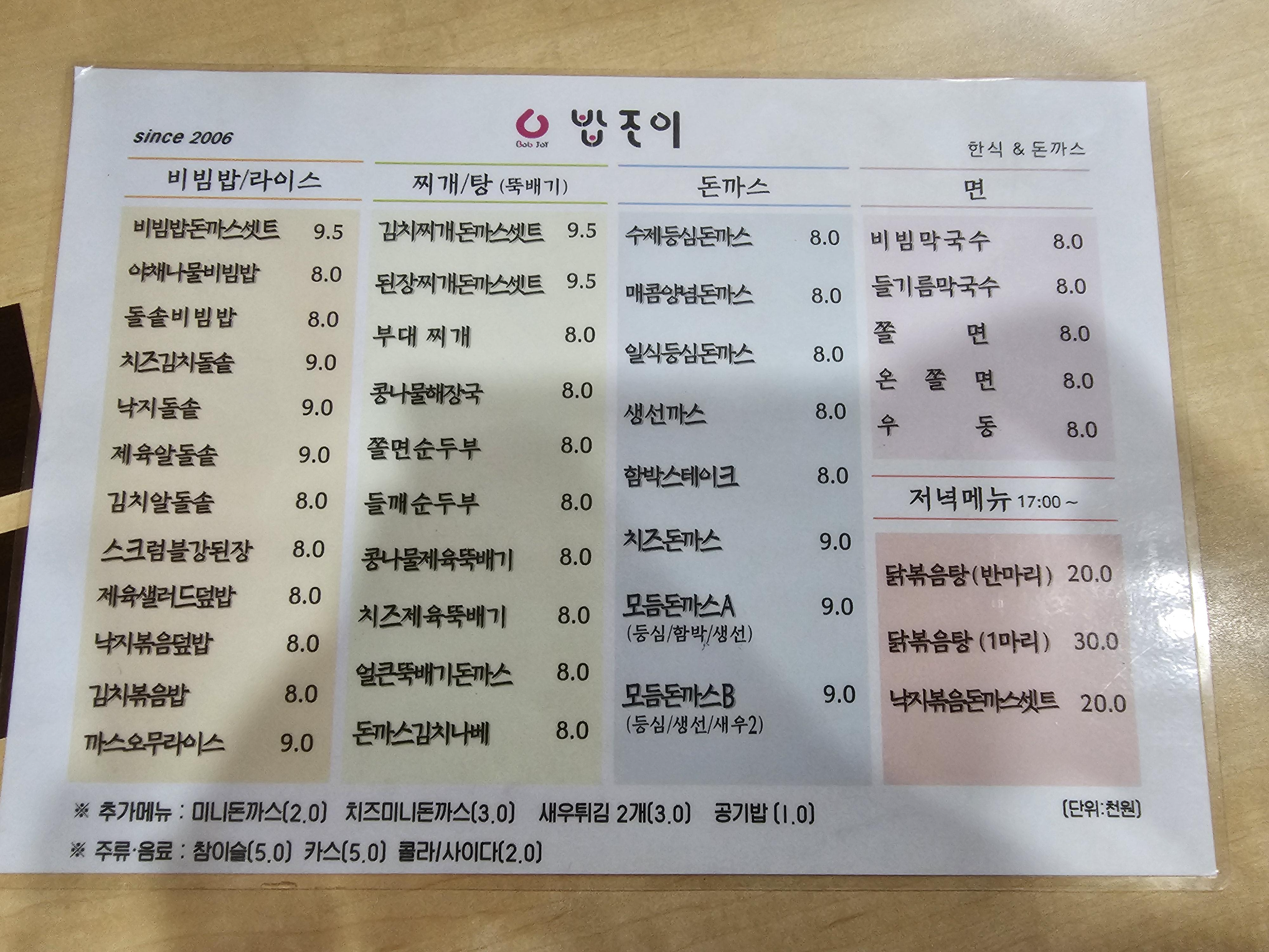 비빔밥부터 돈가스, 우동, 찌개류 등 다양한 음식을 판매하고 있습니다.