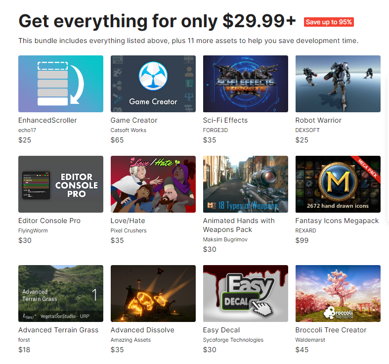 Unity의 새로운 시간 여행: 메가 번들 할인이 시작됩니다. 소홀했던 프로젝트에 활기를 불어 넣을 수 있는 3개의 엄선된 최고 품질의 클래식 에셋 및 도구 세트를 최대 95% 할인된 가격으로 만나보실 수 있습니다.