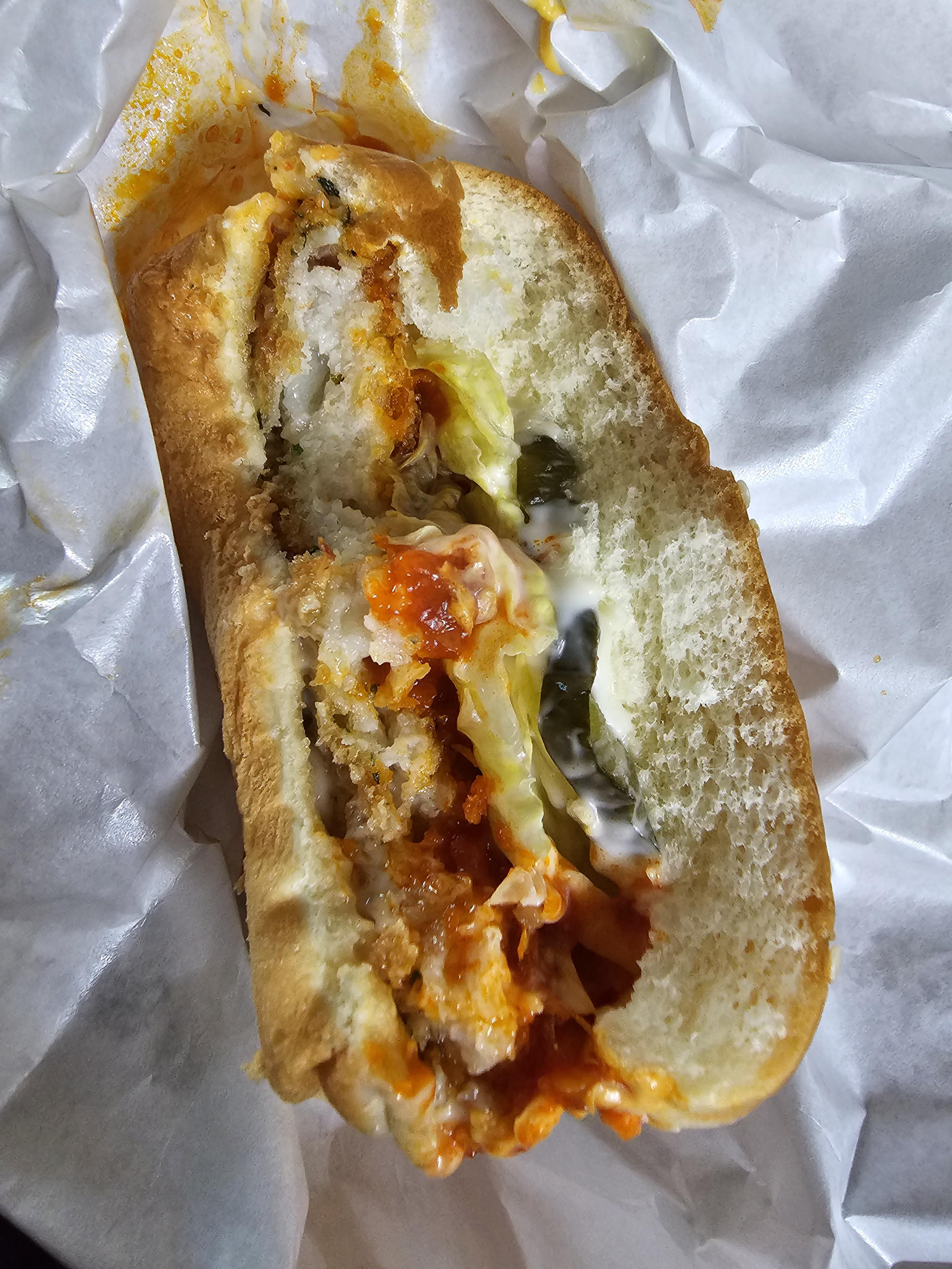 칠리소스가 많이 들어가 있어서 꽤 짭짤했습니다. 소스가 너무 강해서 새우패티가 죽는 느낌이 있네요.