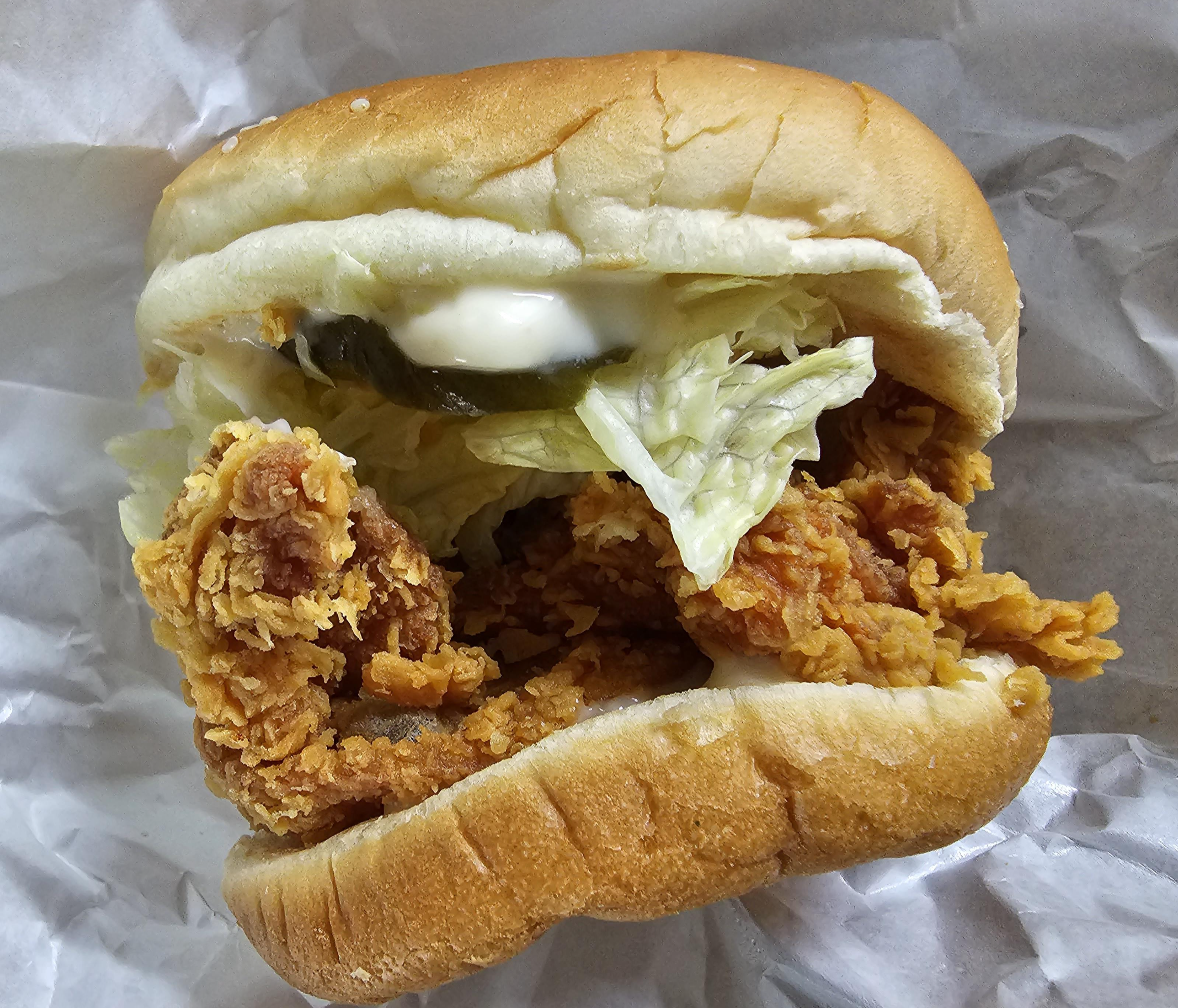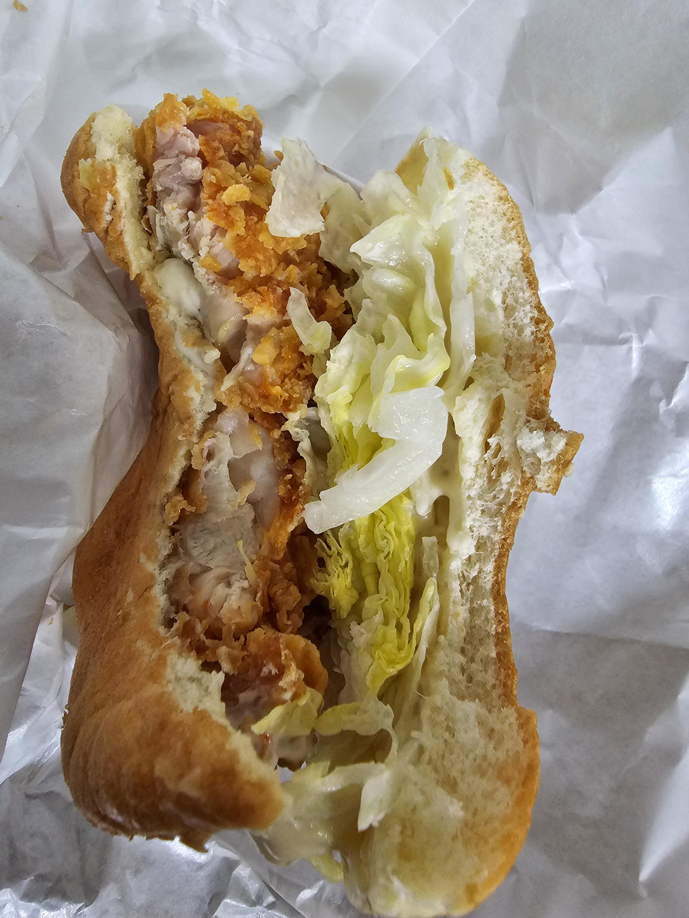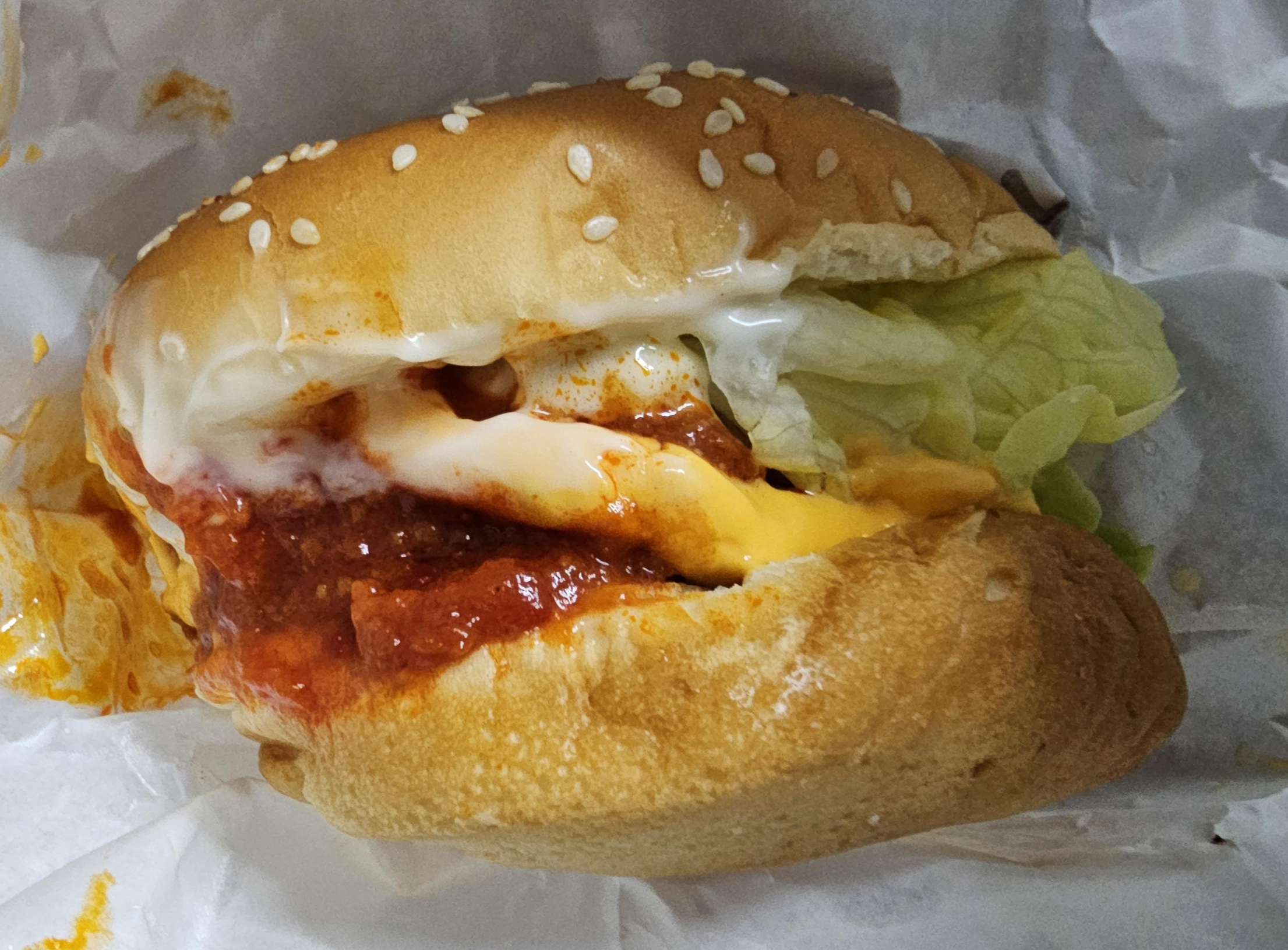 그리고 여전히 패티의 모양이 멋대로 생겼습니다. 맛은 역시 다리살 패티라 부드럽고 맛있었습니다.