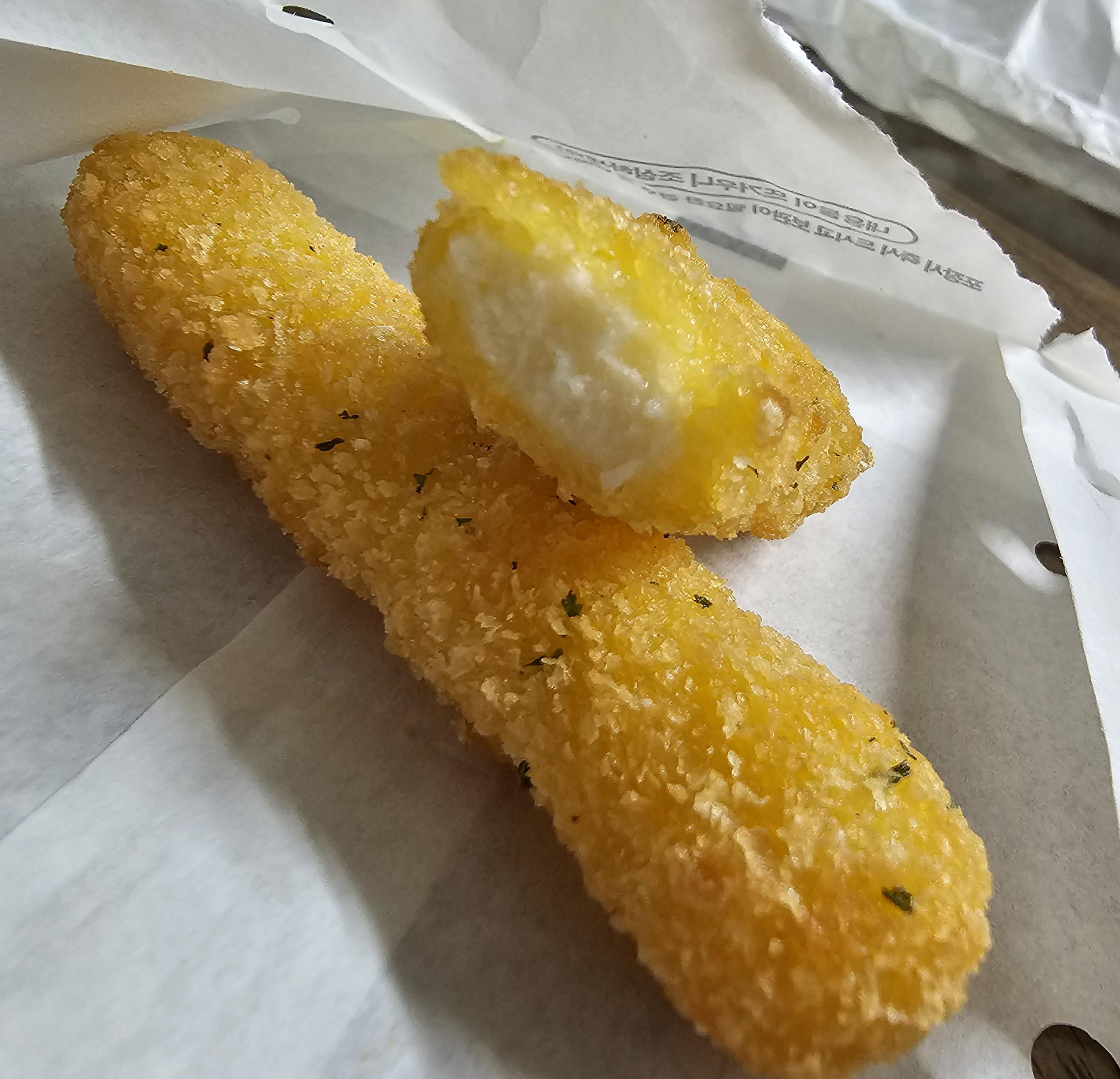 치즈스틱은 제 입맛에는 타사 브랜드 치즈스틱들과 비교해서 치즈가 늘어나지도 않고 약간 퍽퍽한 느낌? 이였습니다. 다른 지점도 그런지 모르겠지만 뭔가 아쉬운 느낌이 들었네요.