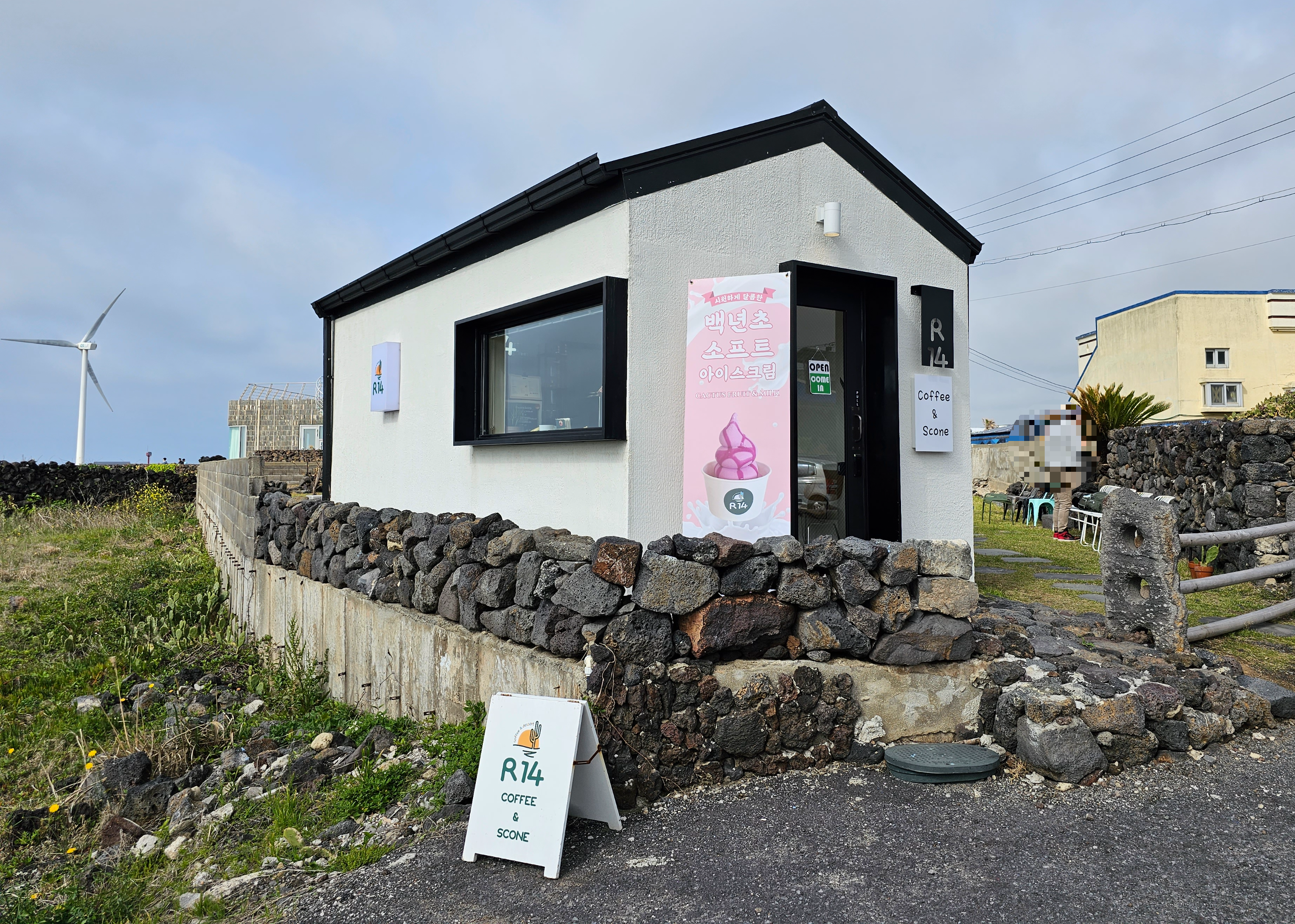제주 월령리 선인장군락지에 위치한 작은 카페 R14에 들였었습니다. 카페 크기가 엄청 작았습니다.