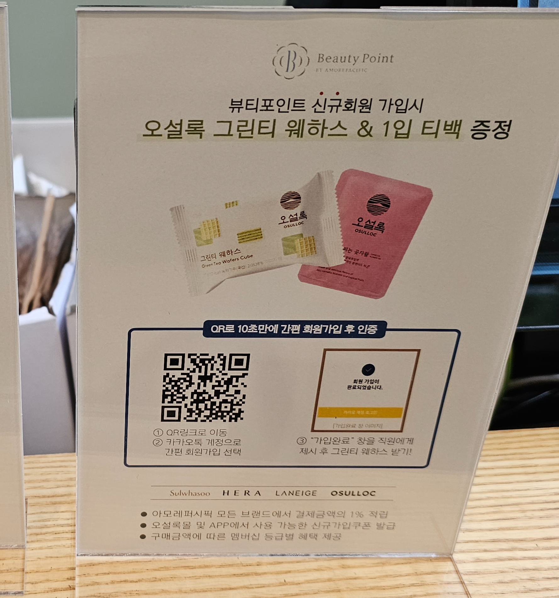 뷰티포인트 가인하면 웨하스와 티백을 준다고 해서 가입을 했고, 녹차웨하스 2개와 티백 2개를 받았습니다.