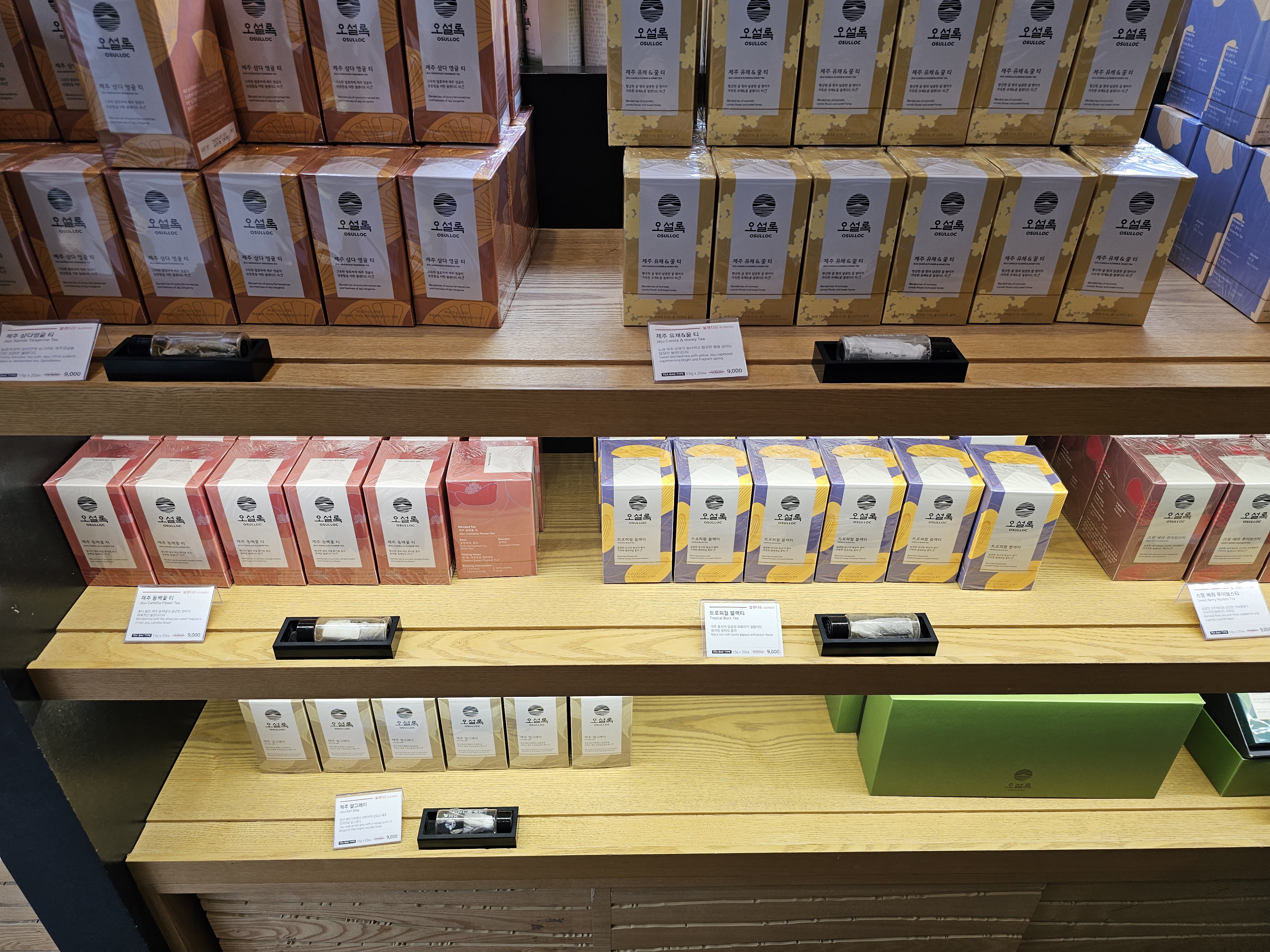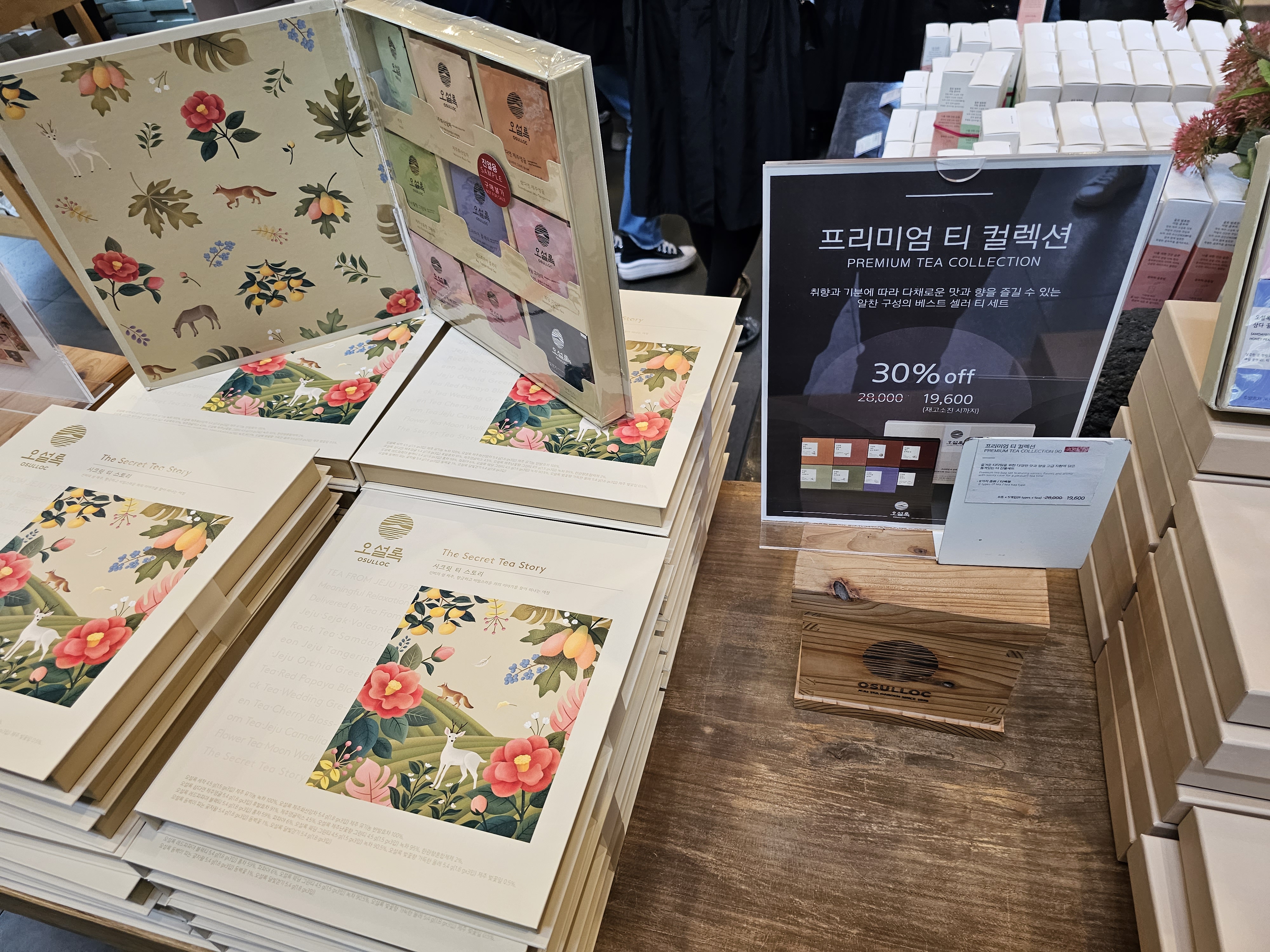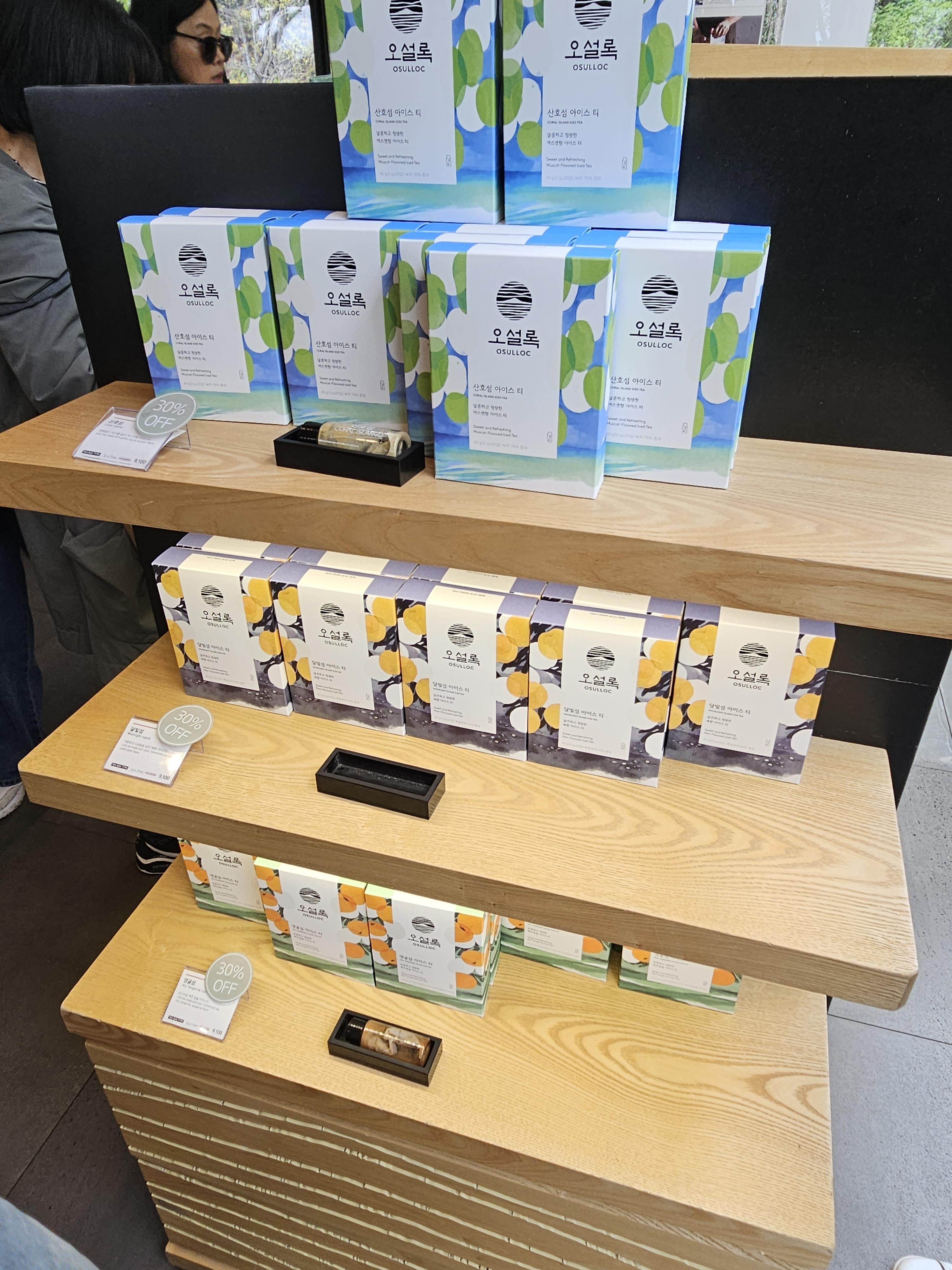 여러 가지 차 종류를 팔고 있었고, 선물세트나 콤부차 같은 거나 웨하스나 랑드샤 같은 과자 같은 종류도 팔고 있었습니다.