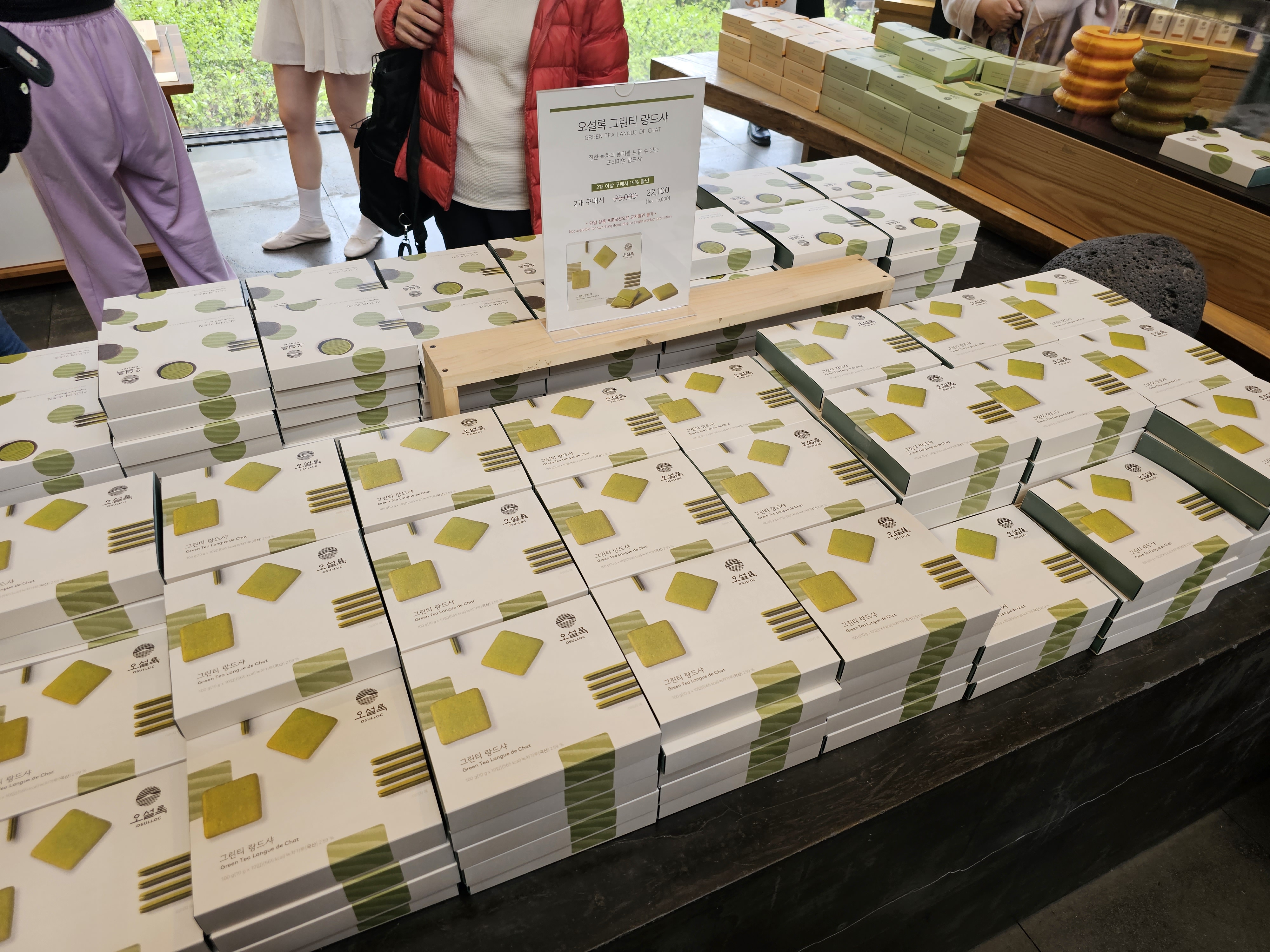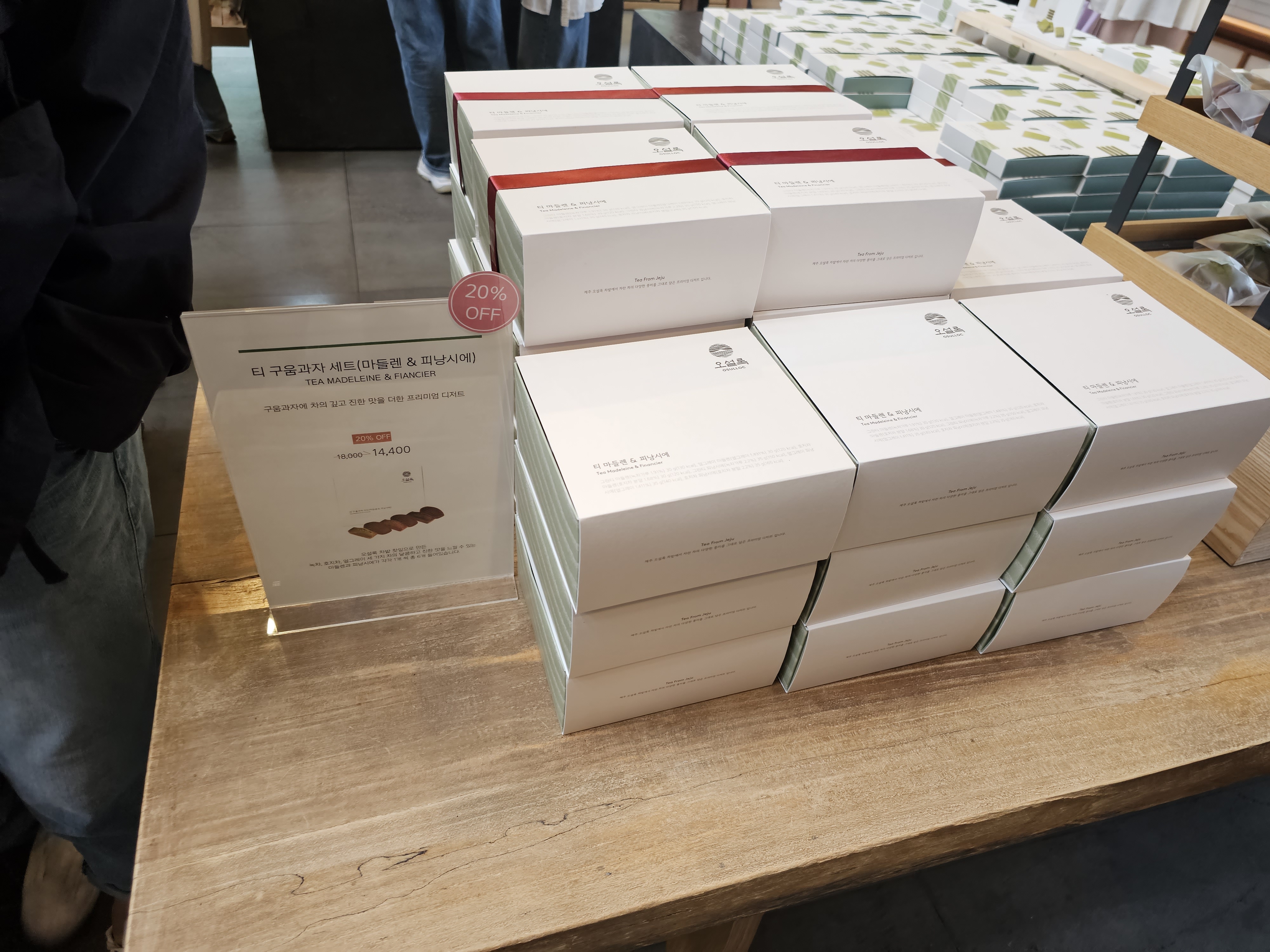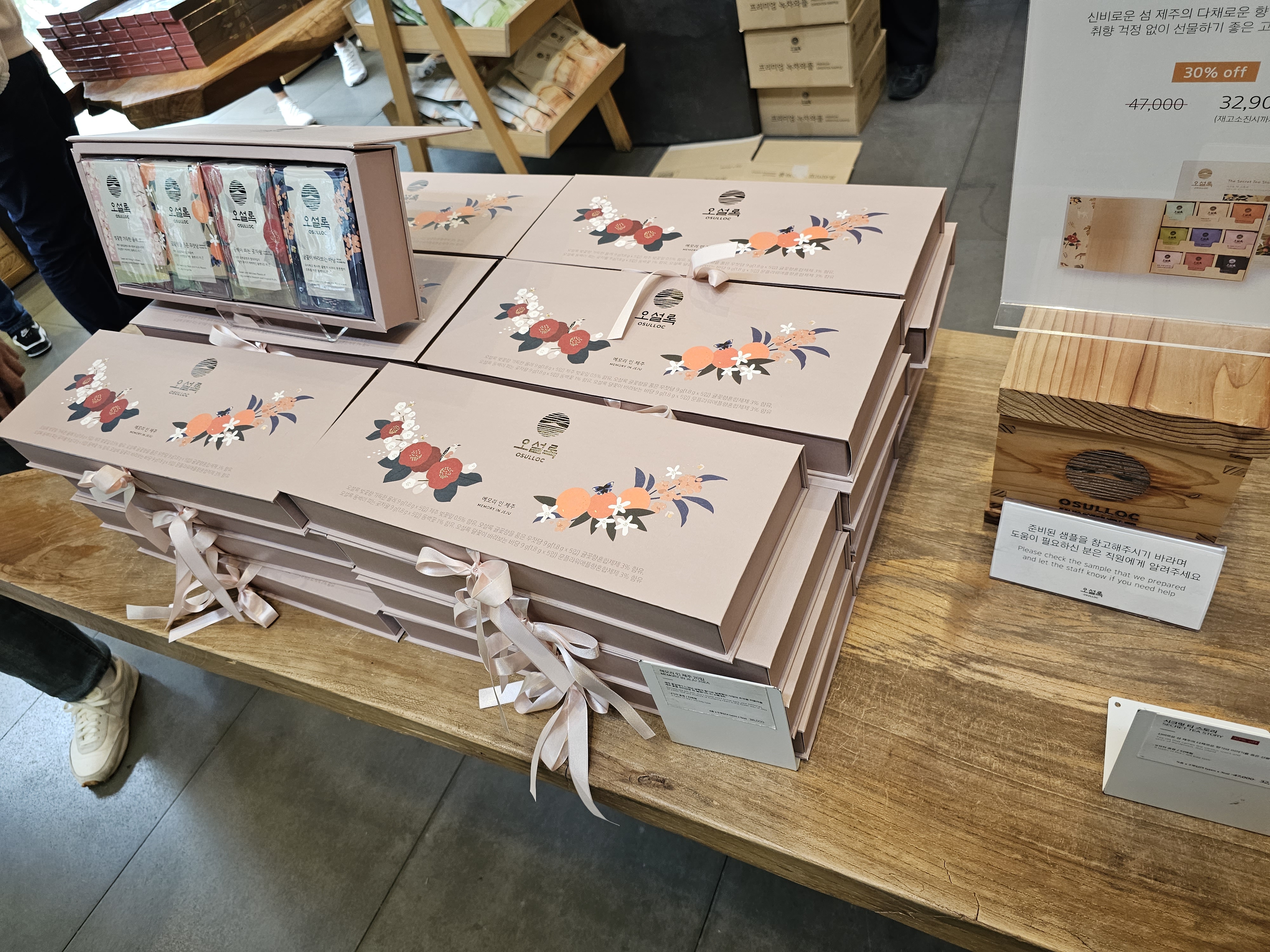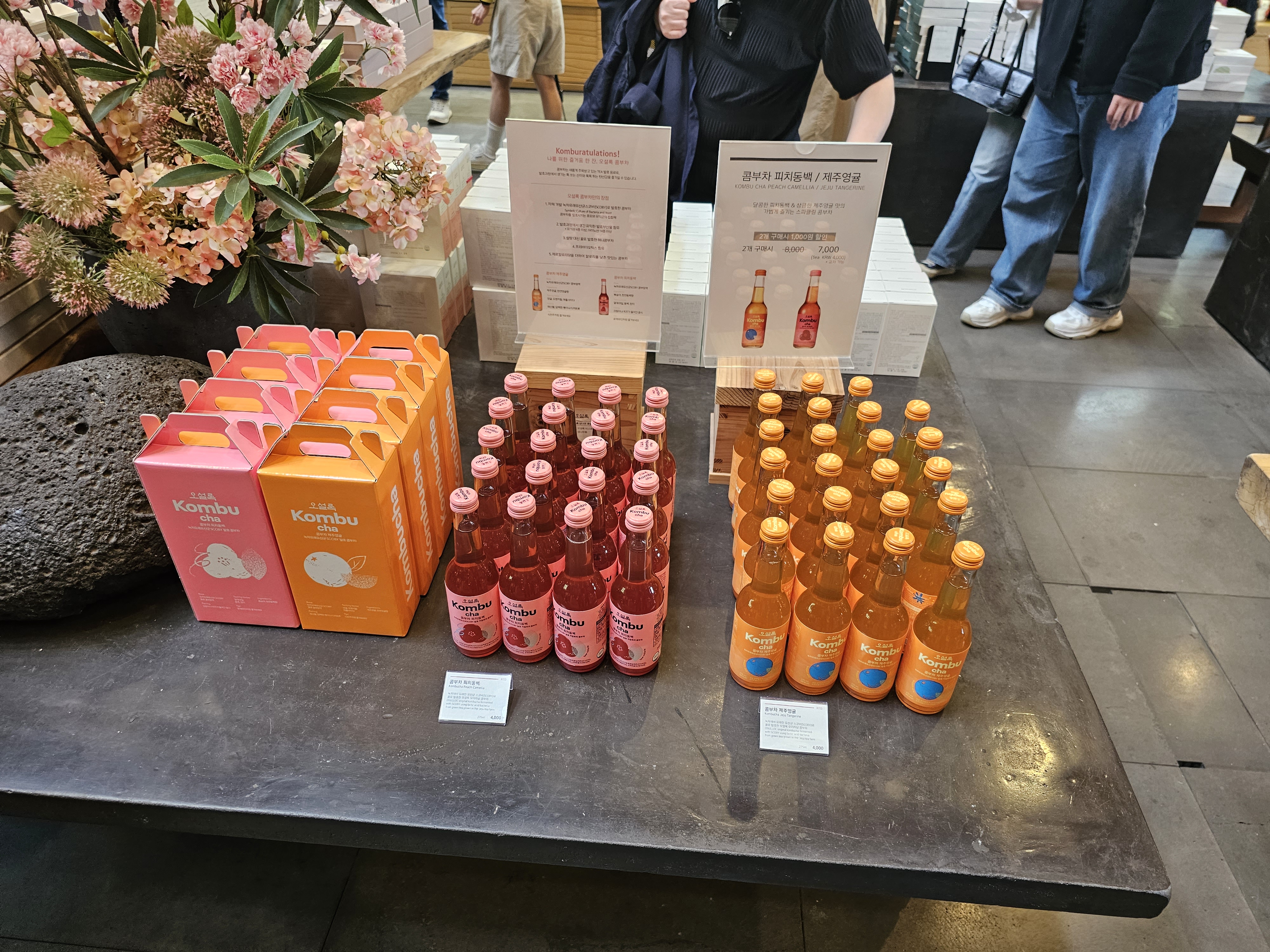 여러 가지 차 종류를 팔고 있었고, 선물세트나 콤부차 같은 거나 웨하스나 랑드샤 같은 과자 같은 종류도 팔고 있었습니다.