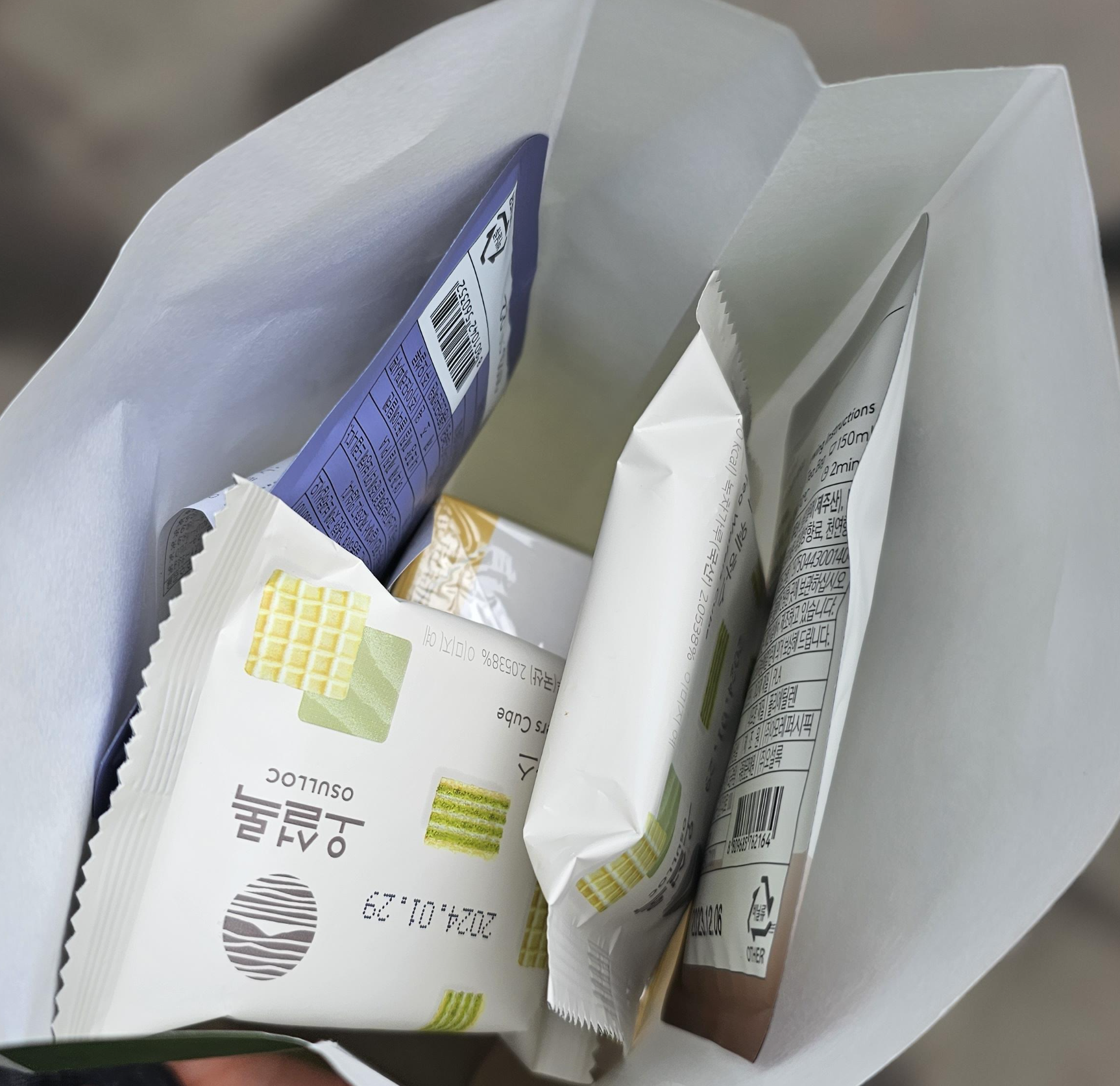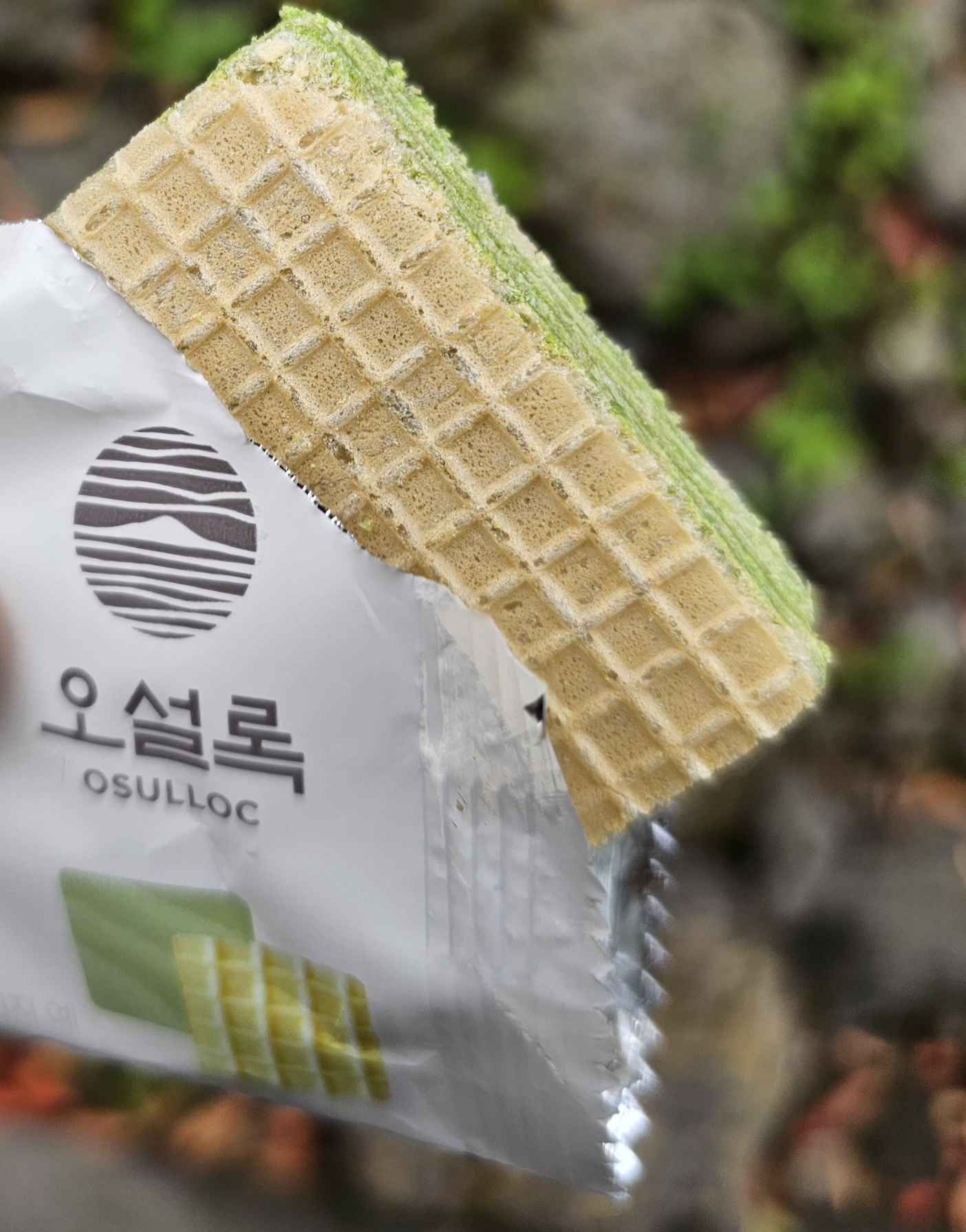 오설록 그린티 웨하스는 녹차맛이라 사이사이 녹색이 보이네요. 정사각형 모양의 웨하스였고, 쓰거나 하지 않고 은은하게 달달한 고소한 맛이 느껴져서 좋았습니다. 산 게 아니라 가입 이벤트로 받아서 더 맛있게 느낀 것 같네요.