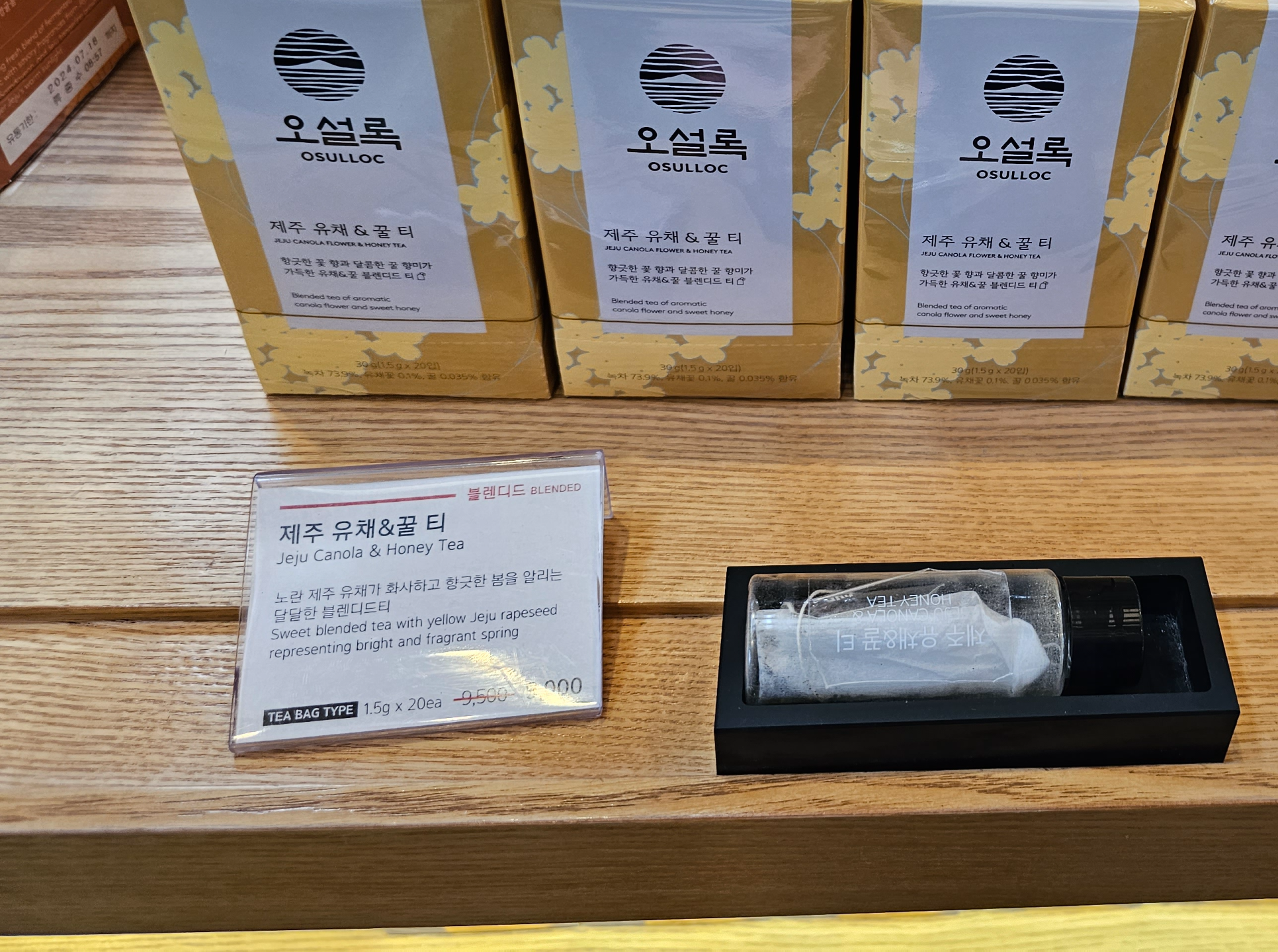 차들은 앞에 작은 병에 티백이 있어서 향은 확인해 볼 수 있었습니다. 저는 제 코에 제일 향기가 좋았던 제주 유채 & 꿀 티(9,000원)를 구매했습니다.