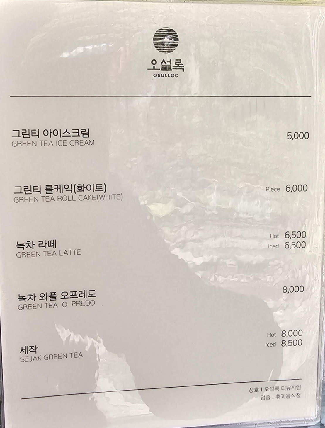 그래도 오설록 하면 생각나는 녹차 관련 그린티 아이스크림이나 그린티 롤케익을 팔고 있었습니다.