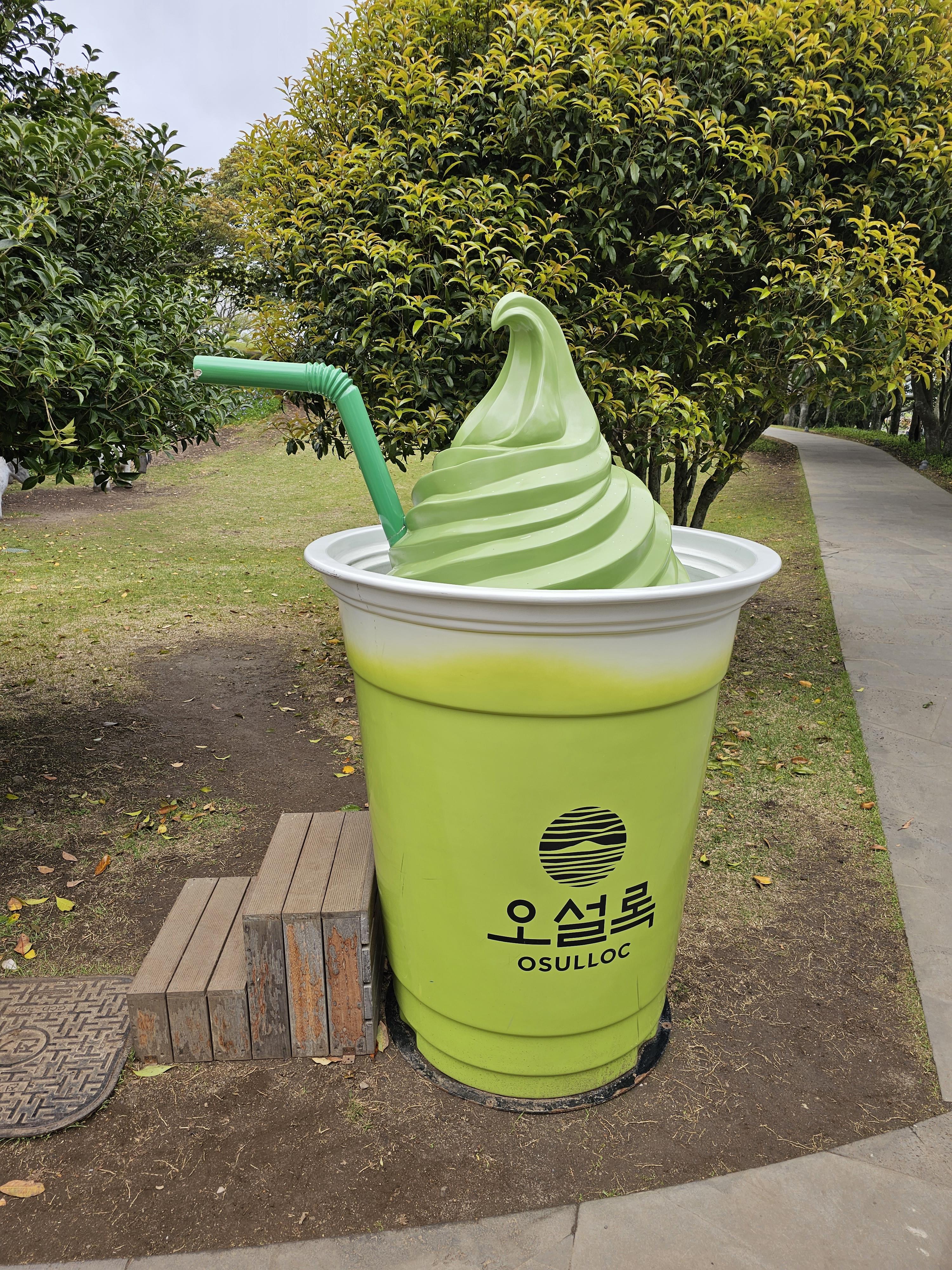 조금 들어가보니 포토스팟 같은 느낌의 컵모양 전시품들이 있었습니다. 여기서 계속 들어가서 이니스프리 제주하우스([제주] 이니스프리 제주하우스 - 돌코롬 크림 커피, 카페라떼, 우유아이스크림 제주 목초 우유 라떼)에서 커피를 마시고 차밭도 구경하고 돌아다니다 보니 오설록 카페와 티를 판매하는 오셜록 티스톤이 나타났습니다.