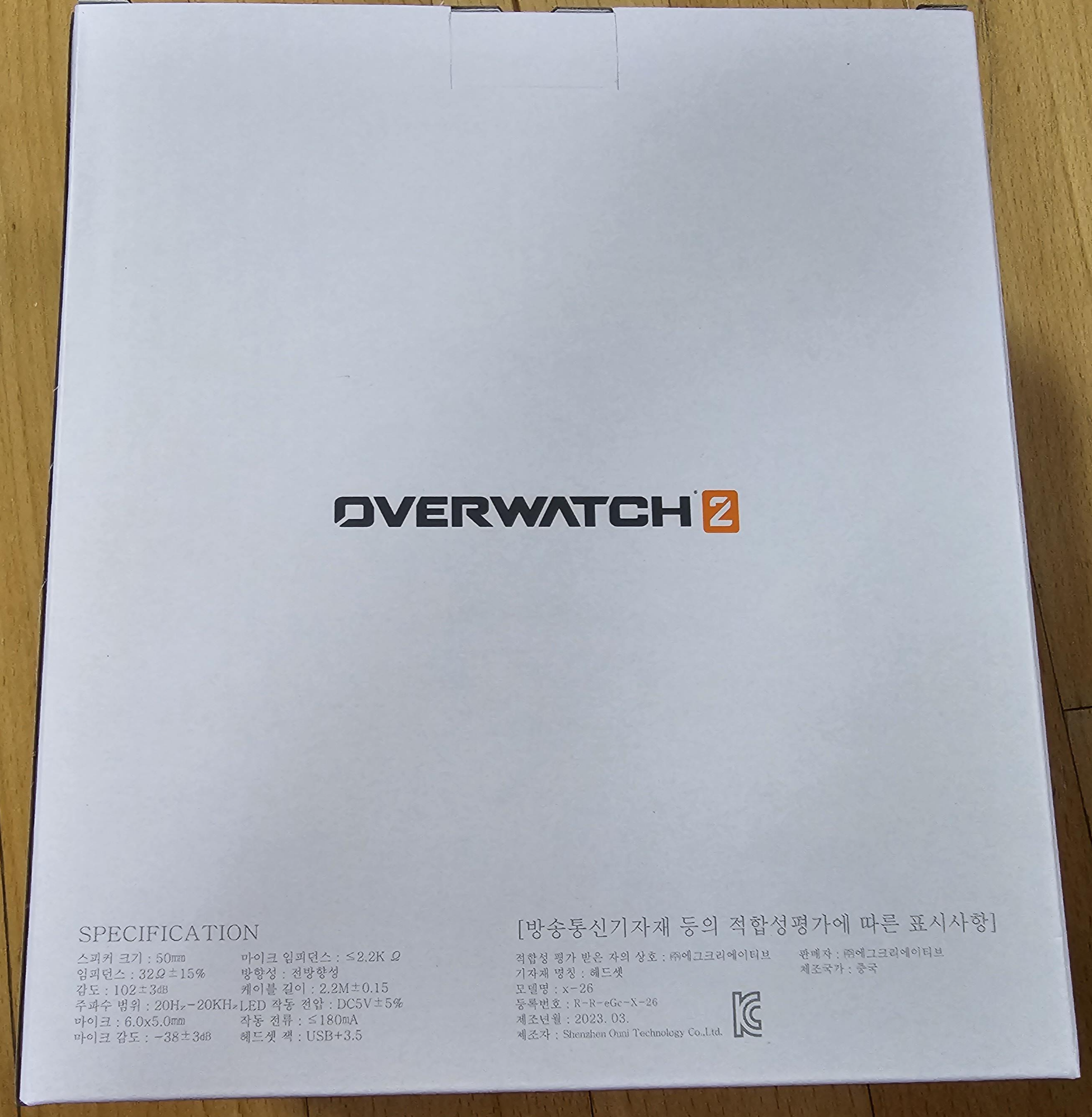 박스 뒷면 하단에는 오버워치 2 게이밍 헤드셋의 사양이 표시되어 있네요.