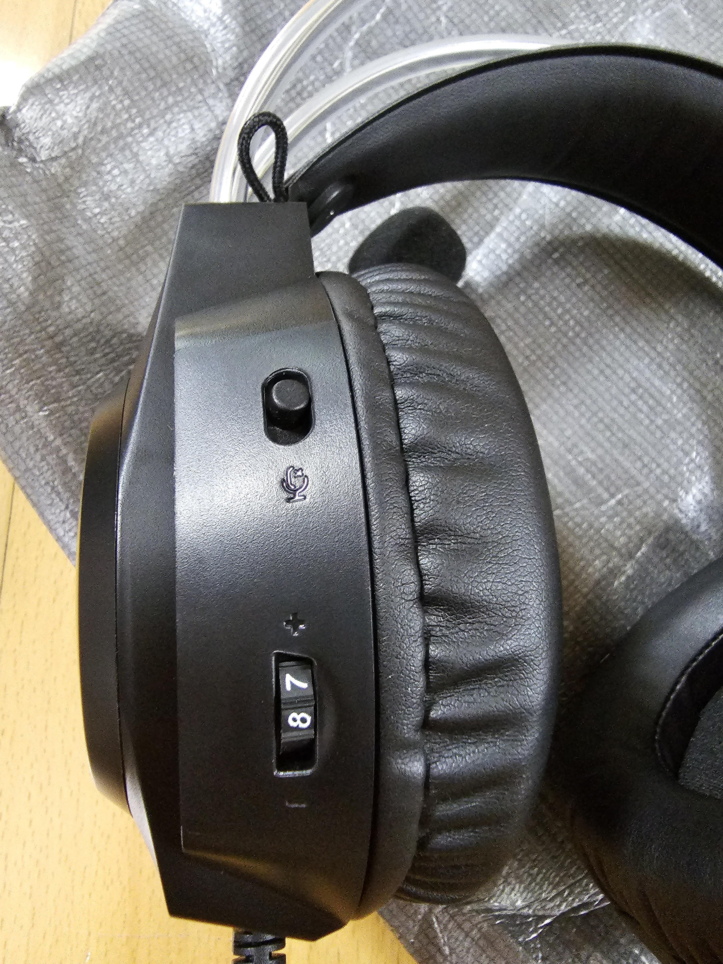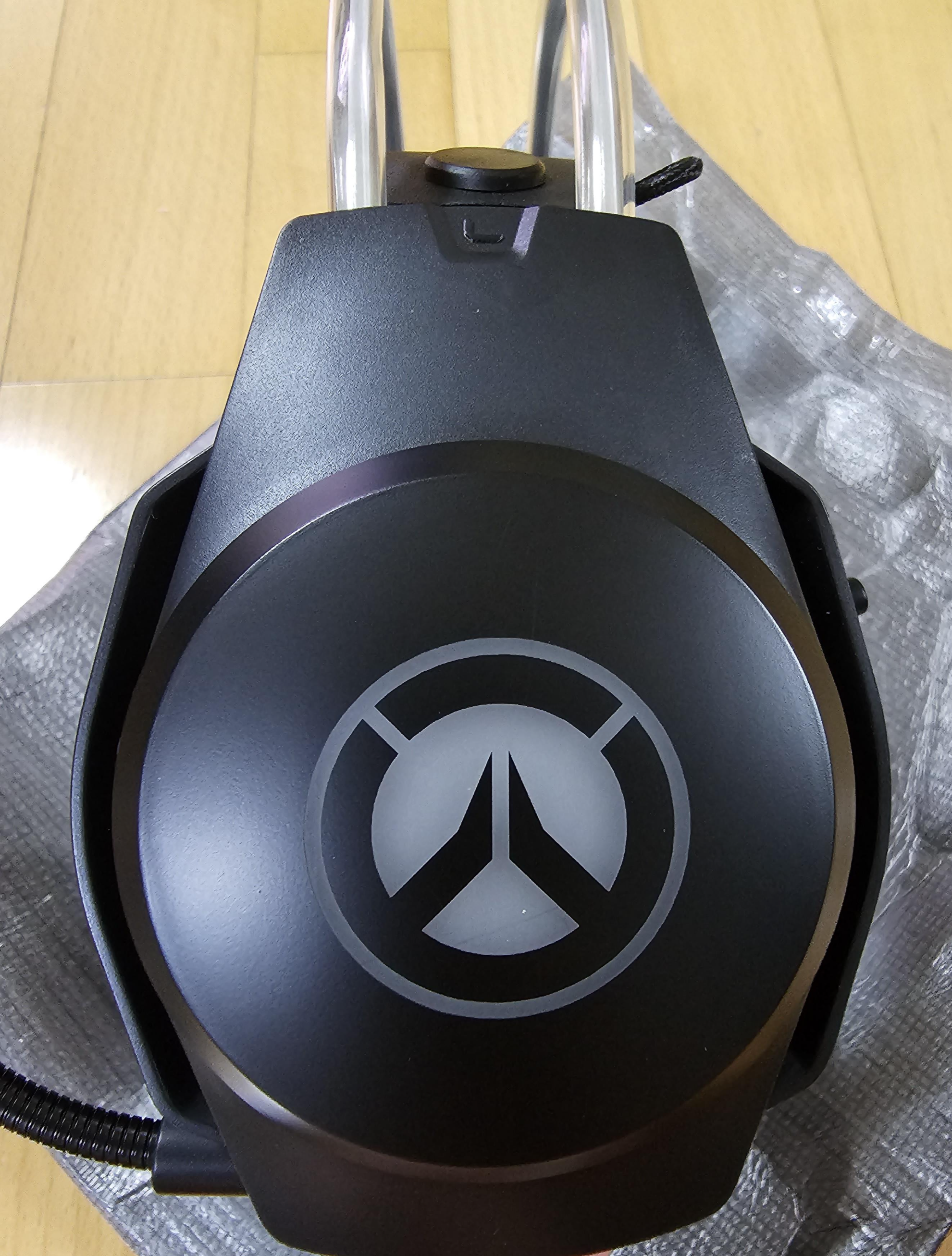 헤드셋의 옆면에는 오버워치 로고가 있고, 마이크는 끝에 스펀지? 같은 게 있네요. 뒤쪽에는 볼륨이나 마이크 온오프가 있었습니다.
