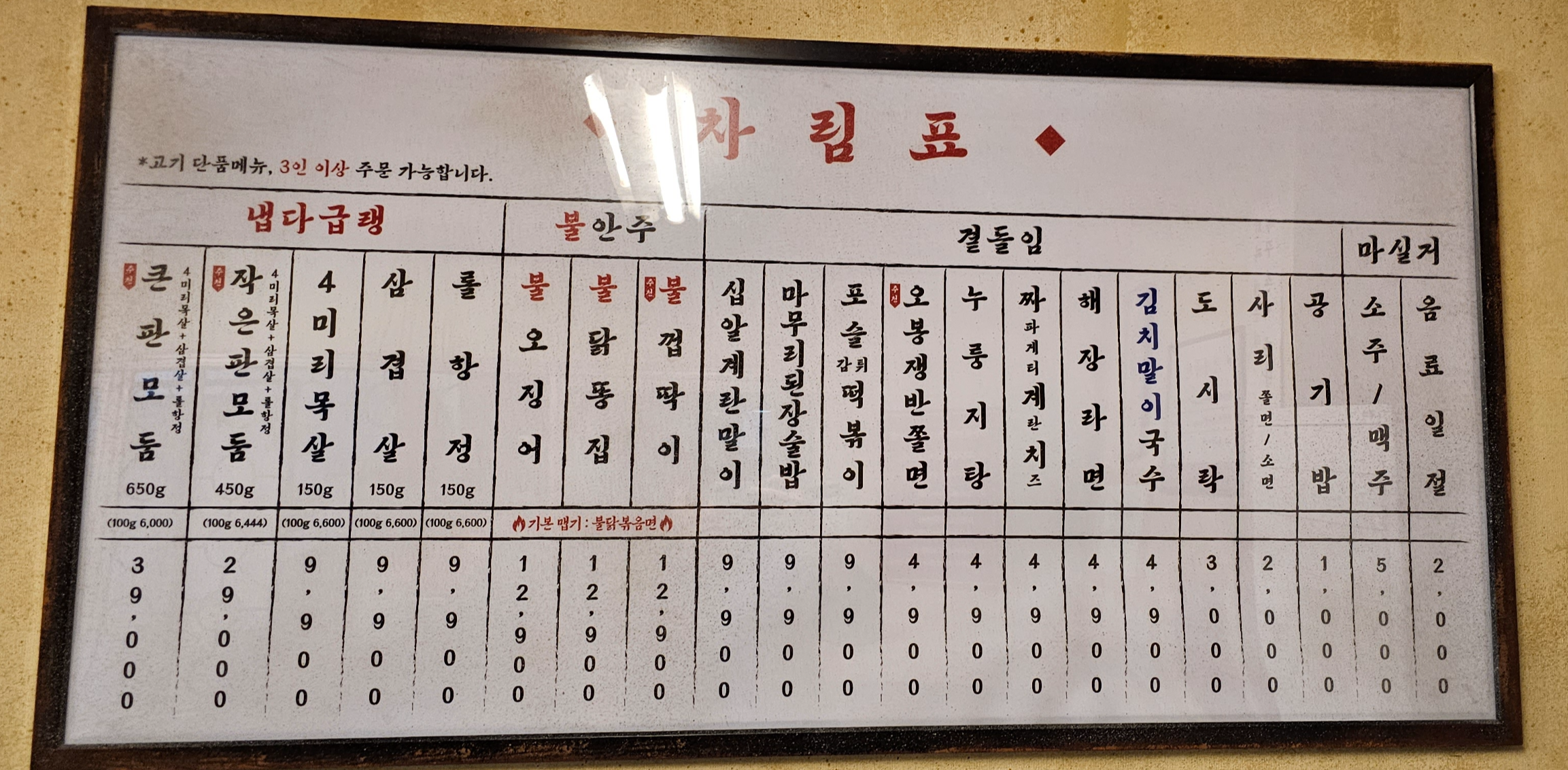 메뉴판에는 고기와 불안주 그리고 사이드 메뉴가 있네요. 가격은 합리적인것 같아서 나중에 한번 저녁에도 와봐야겠습니다.