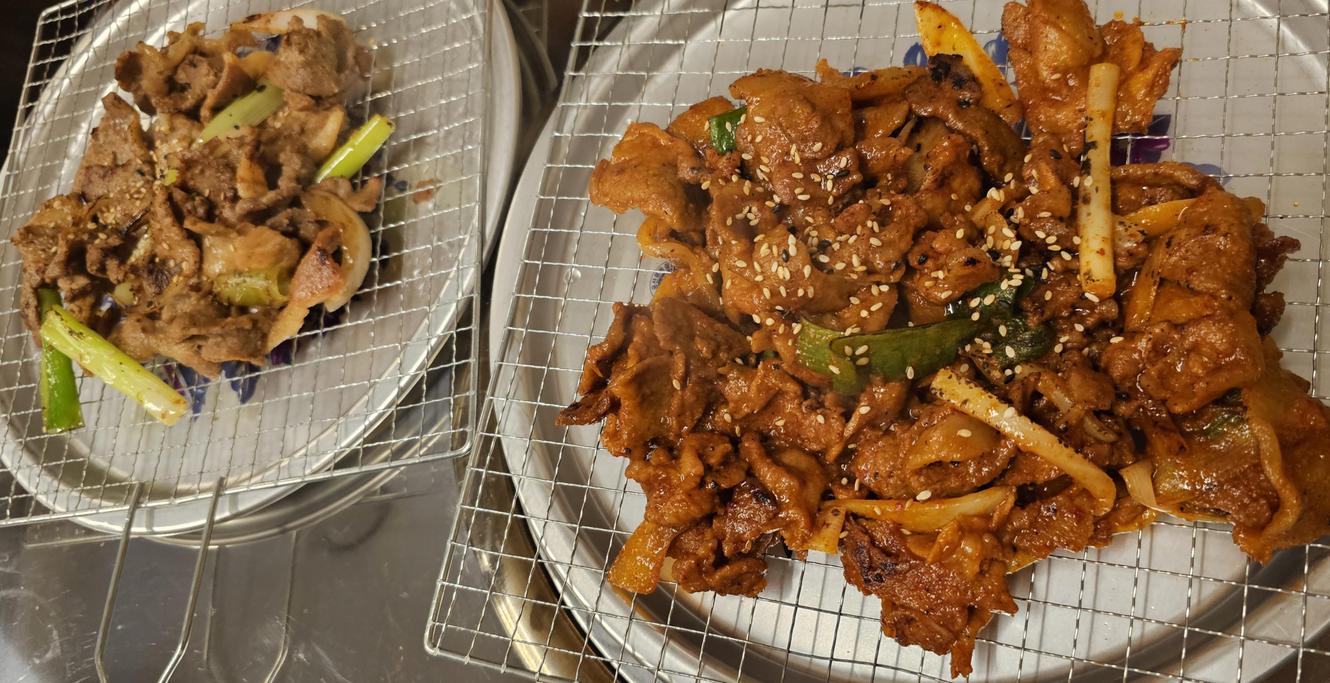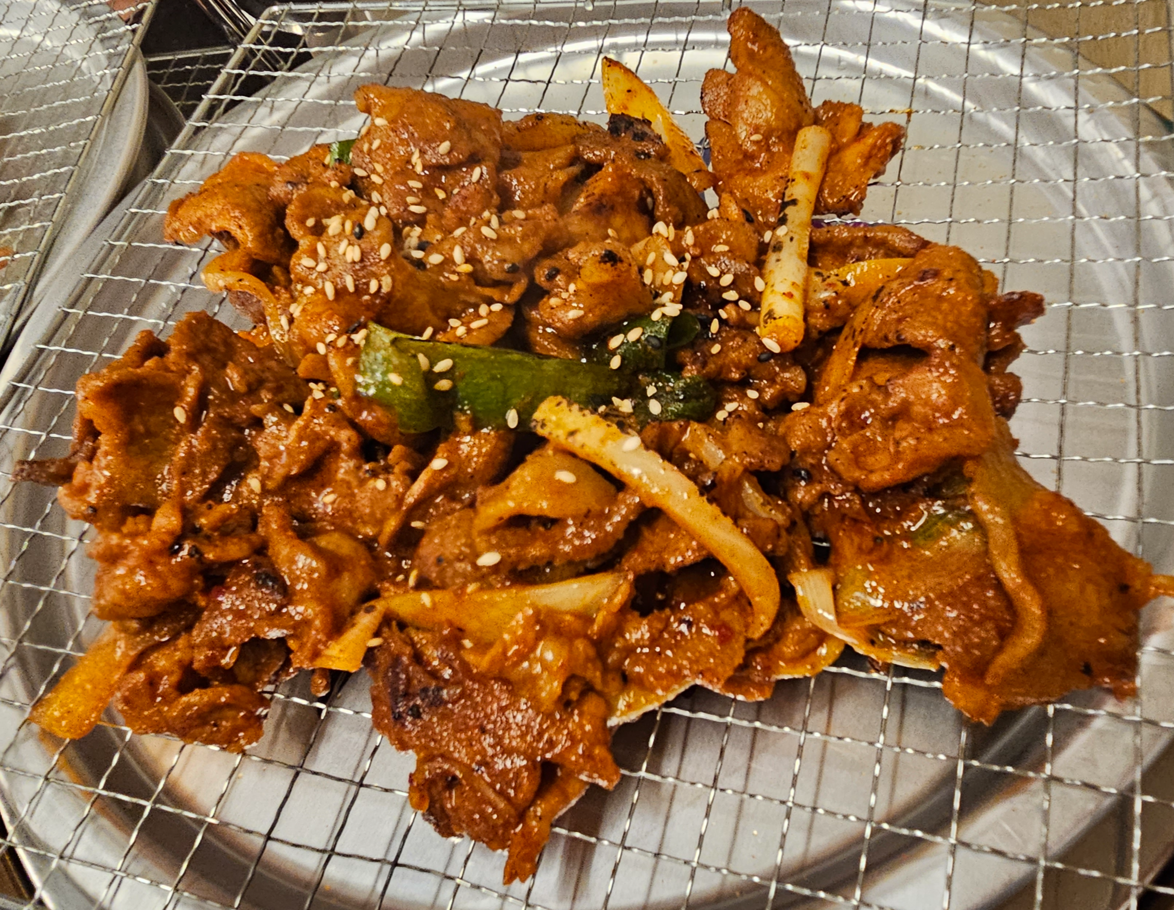 청양석쇠구이는 고기와 파, 양파가 같이 볶아진 느낌이고 생김새에 비해 불맛은 없었습니다. 석쇠로 구운 건지도 모르겠네요. 맛은 있었지만 석쇠구이에 기대한 불맛은 없어서 아쉽기도 했습니다.