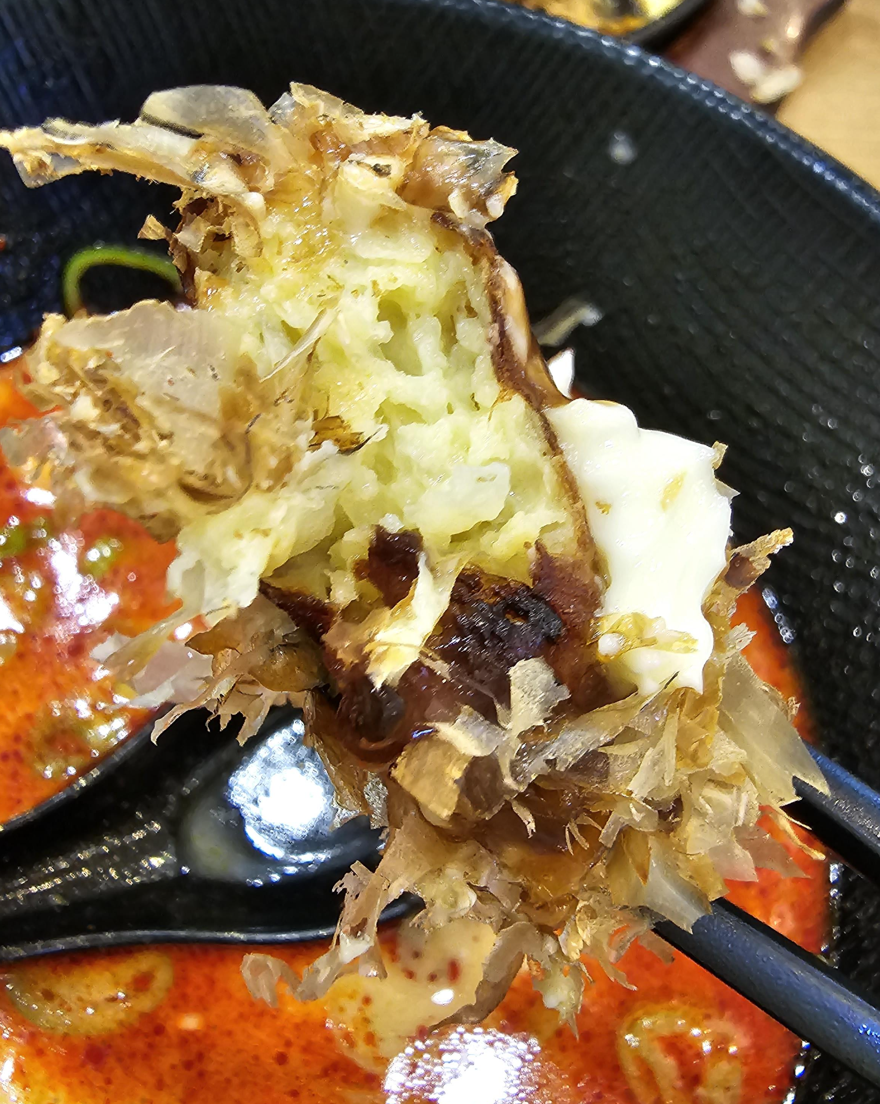 가격이 12,000원이라 오징어나 고기 조각이라도 들었을 줄 알았는데 그런 부재료는 없고, 양배추도 거의 없는 듯 들어 있어서, 약간 문어 없는 타코야끼? 먹는 느낌이었습니다. 마요네즈가 많이들어가 있고, 맛은 있었지만 가격생각하면 아쉽네요.