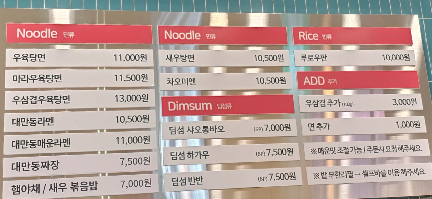 우육탕면부터 라멘 같은 면류 부터 딤섬 같은 음식도 팔고 있었습니다.